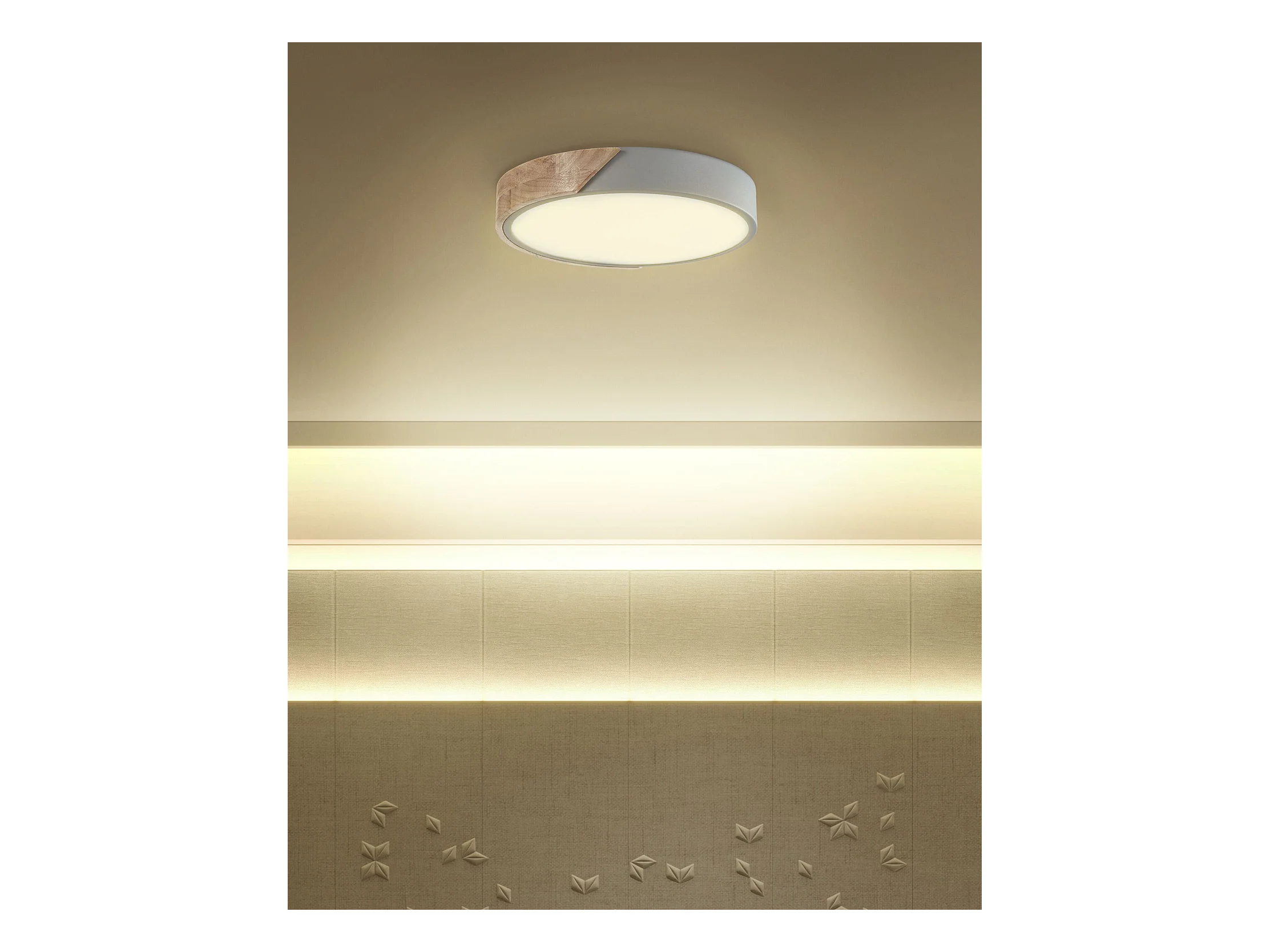 LED Deckenleuchte Metall Acryl grau Holzoptik rund warmweißes Licht Pattani