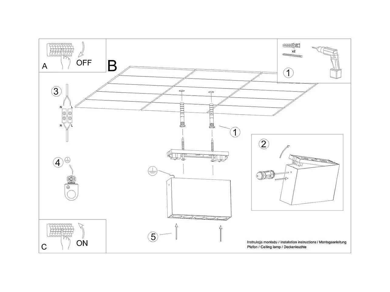 Deckenlampen Sole Minimalistisch Aus Aluminium - 5 Lichtquellen - L.13,7 X H. Cm - Schwarz