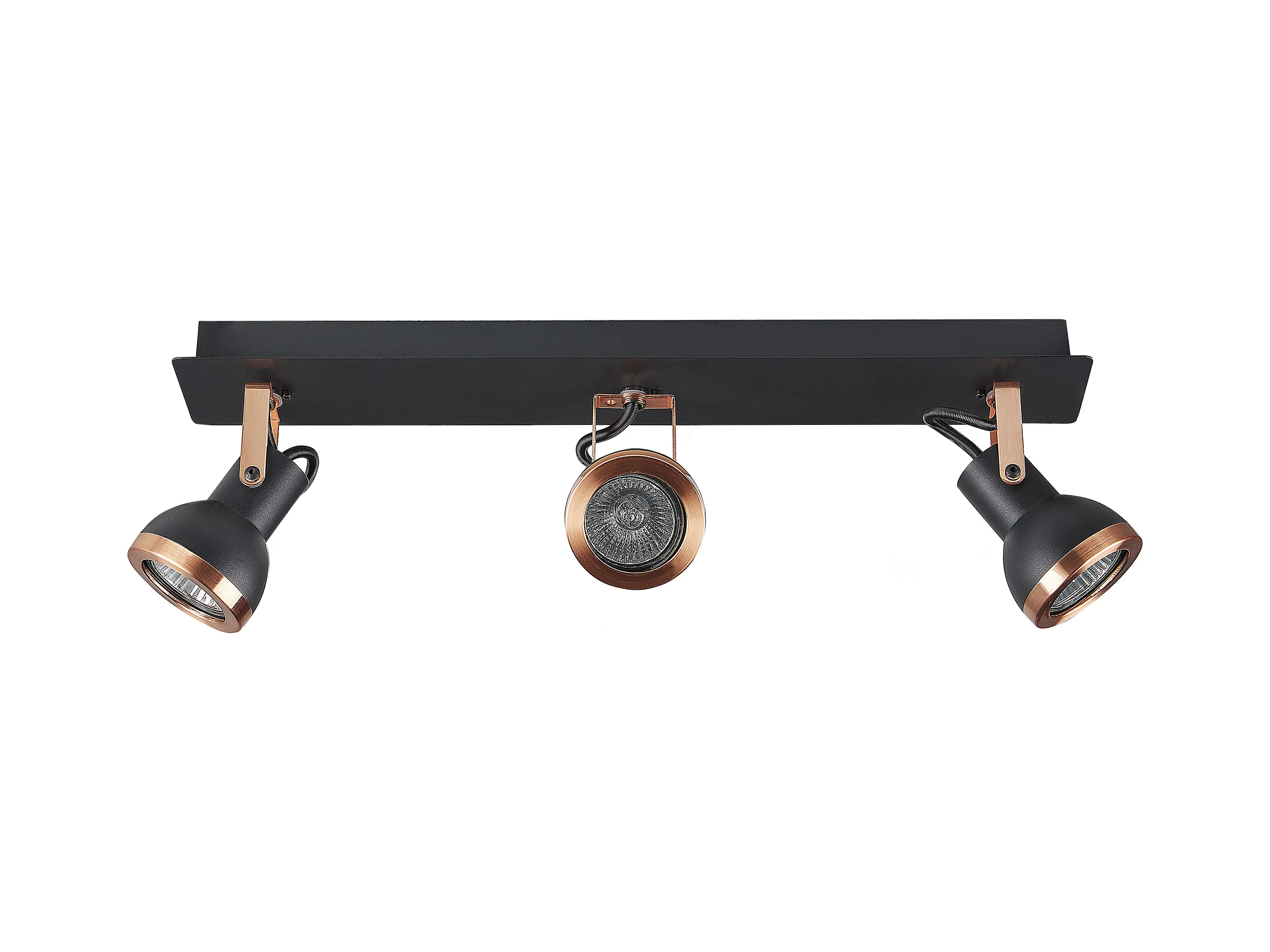 Rechteckige Deckenlampe 3-flammig aus Metall schwarz/kupfer Baro