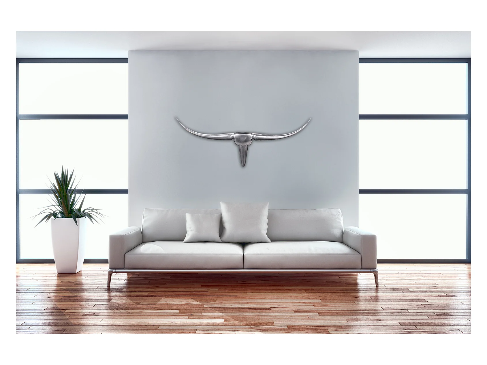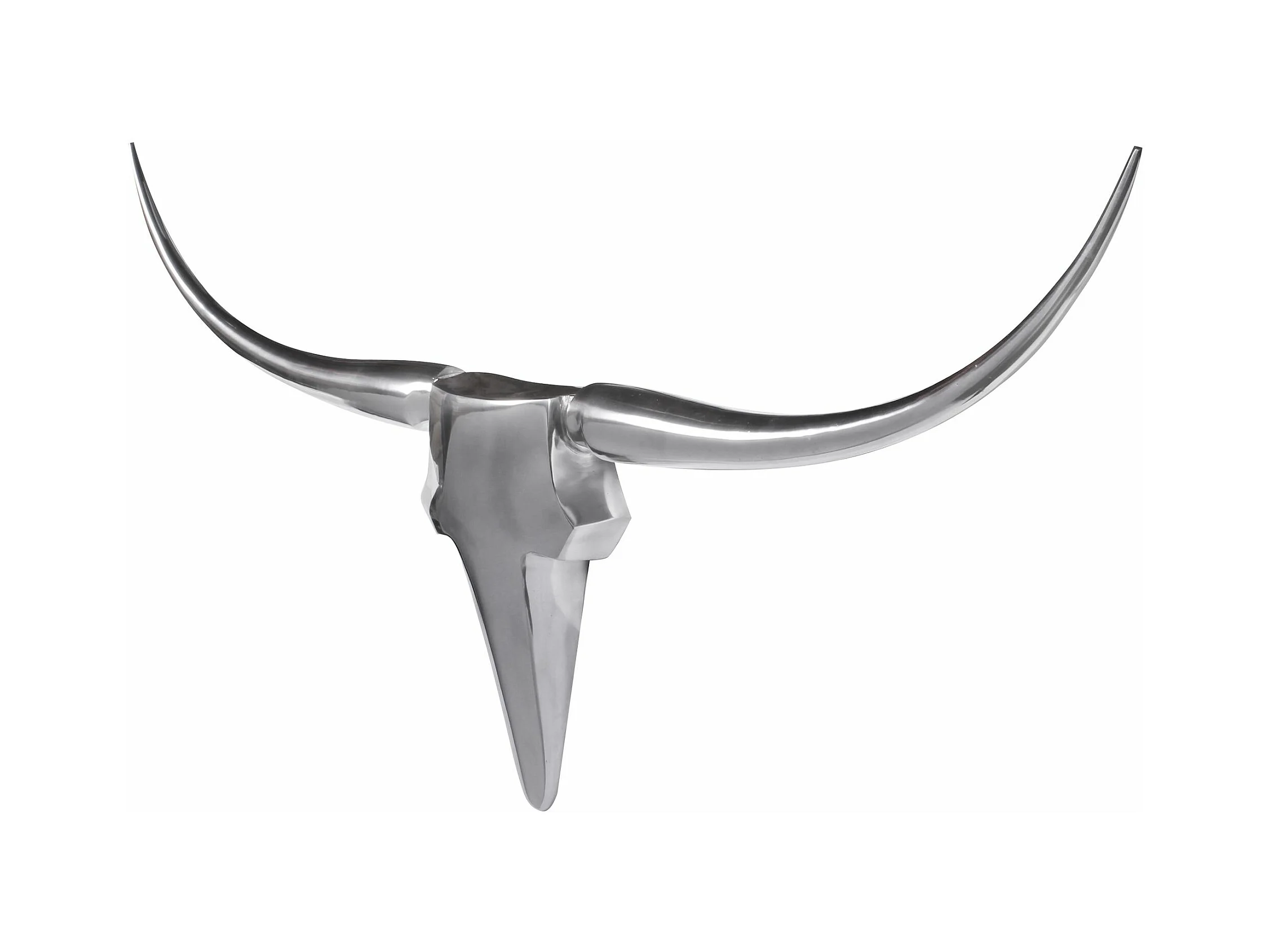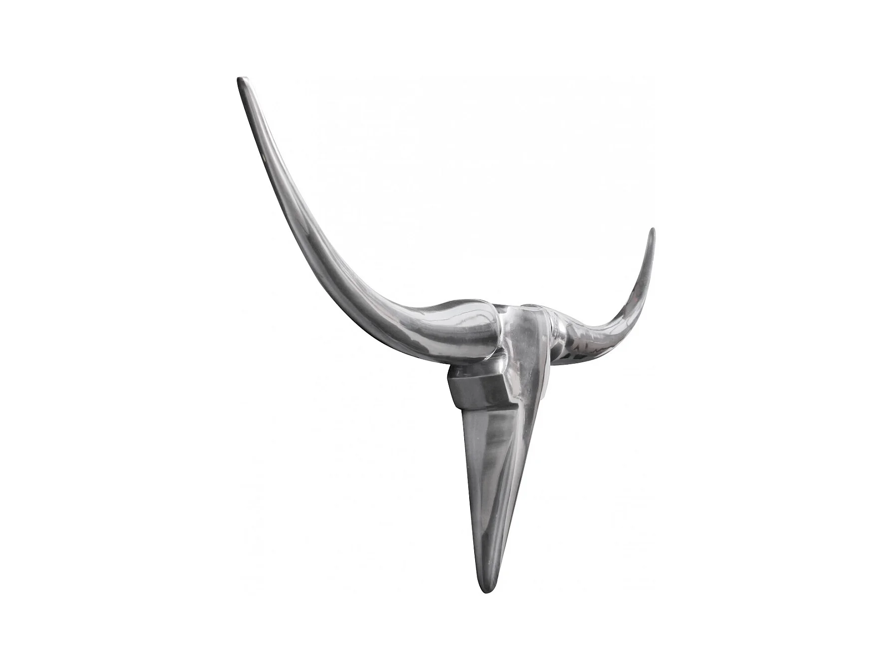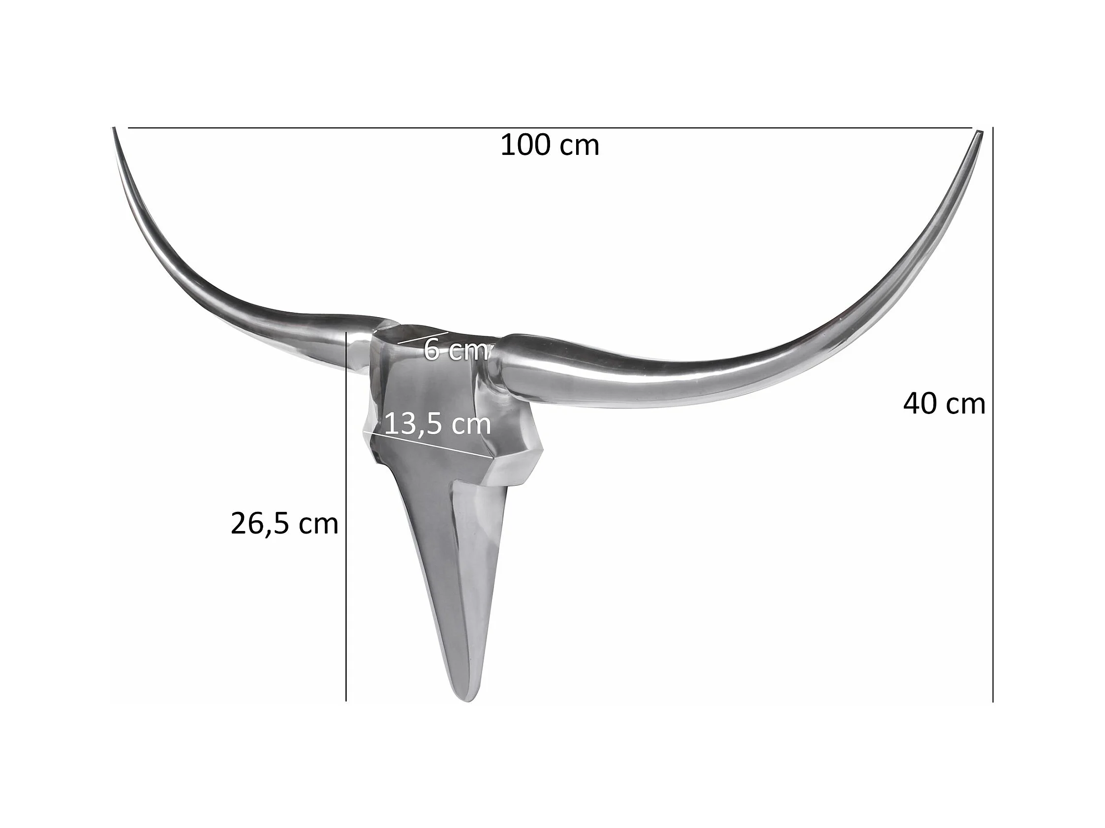 Deko Geweih Bull M Aluminium Design Hörner 100cm Wanddekoration Silber