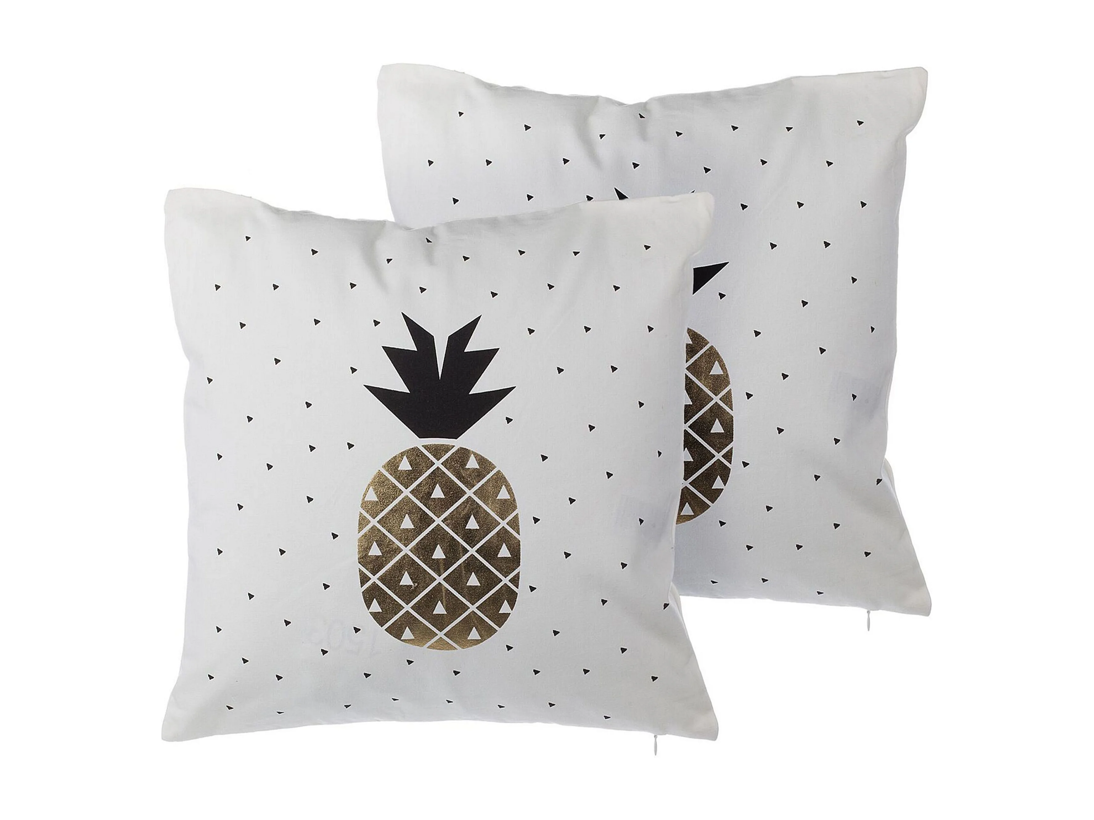 Dekokissen Baumwolle Ananas weiß/schwarz/gold 45 x 45 cm im 2er Set Yasmin