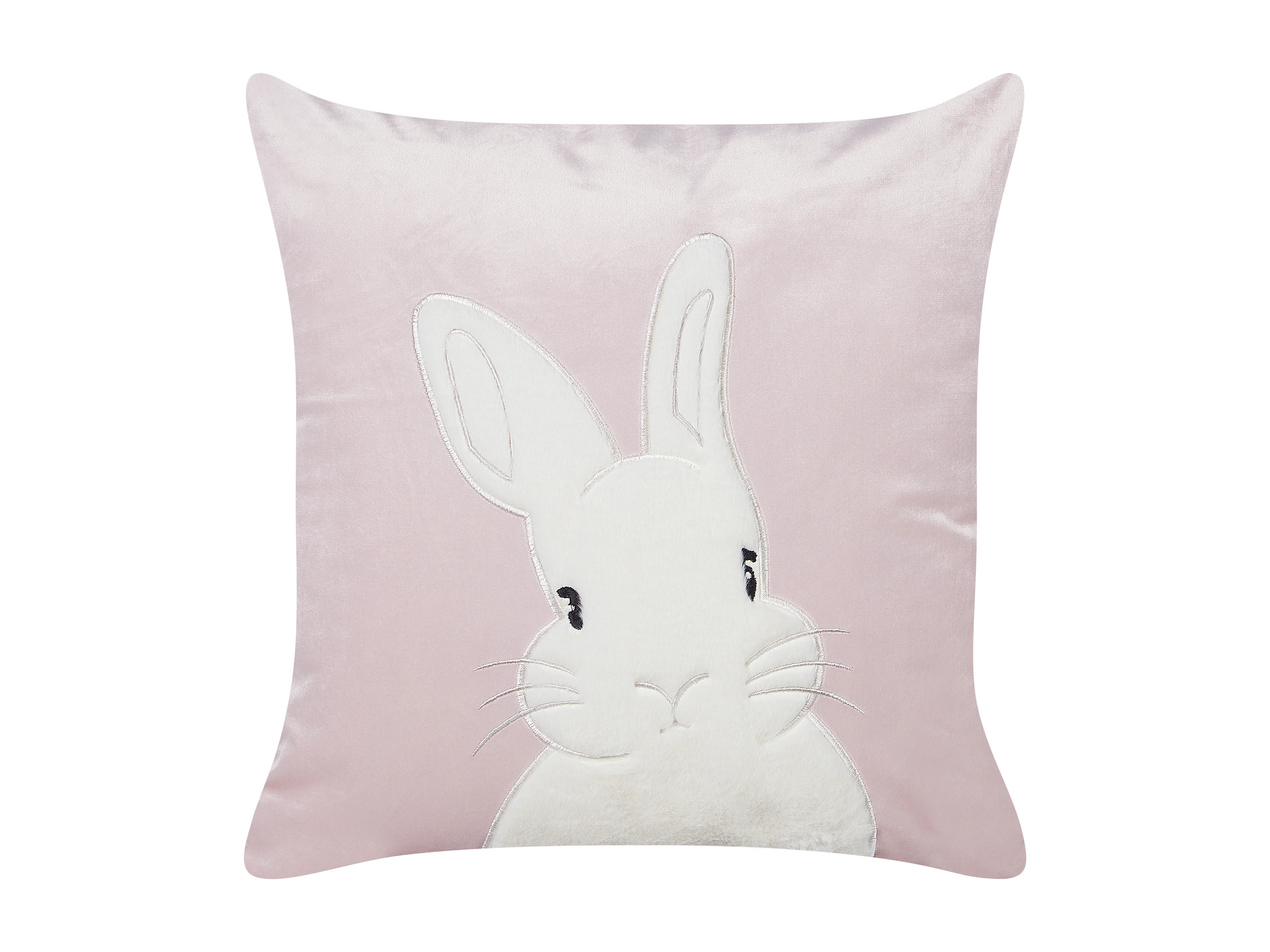 Dekokissen aus Samt und Polyester 2er set mit gesticktem Hasenmotiv 45 x 45 cm Rosa Iberis