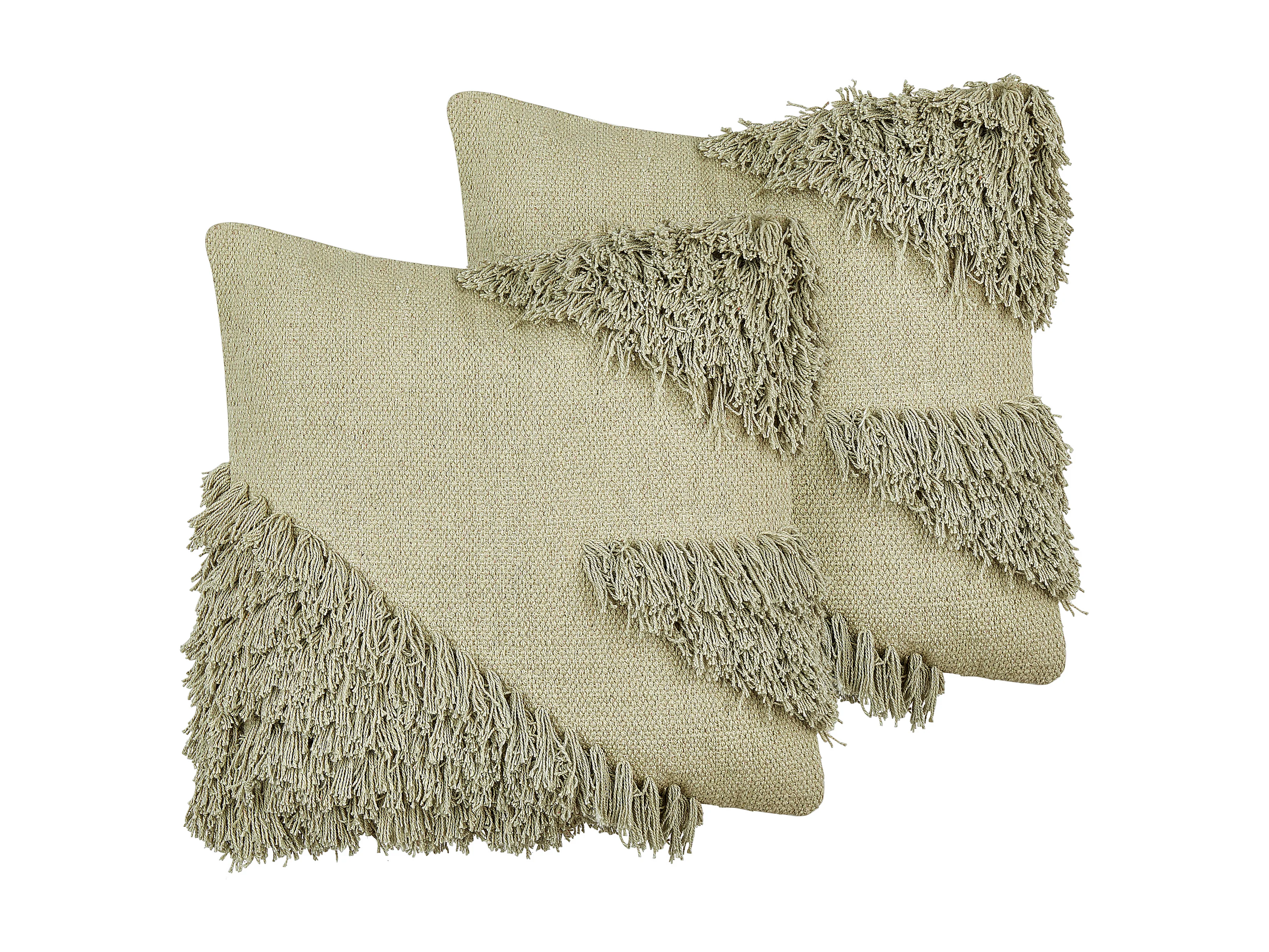 Dekokissen 2er Set Baumwolle grün 45 x 45 cm quadratisch mit Fransen Sourwood