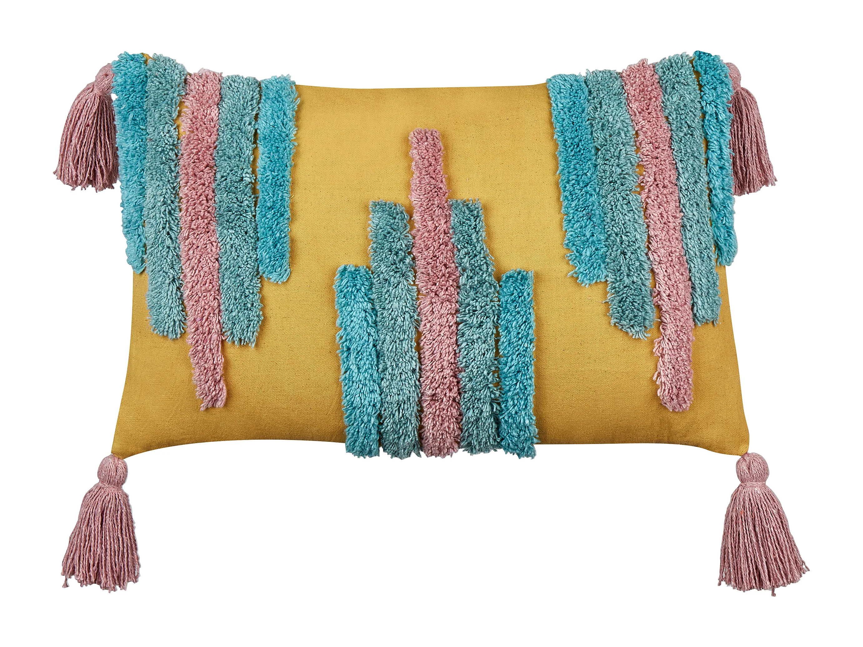 Dekokissen 2er Set Baumwolle bunt / gelb getuftet mit Quasten 30 x 50 cm Dijkot