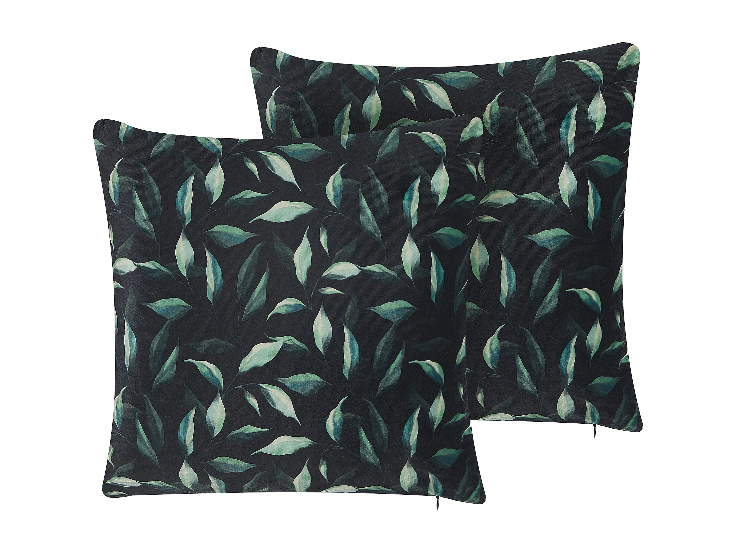 Dekokissen 2er Set Blättermotiv grün und schwarz 45 x 45 cm Samtstoff Toadflax