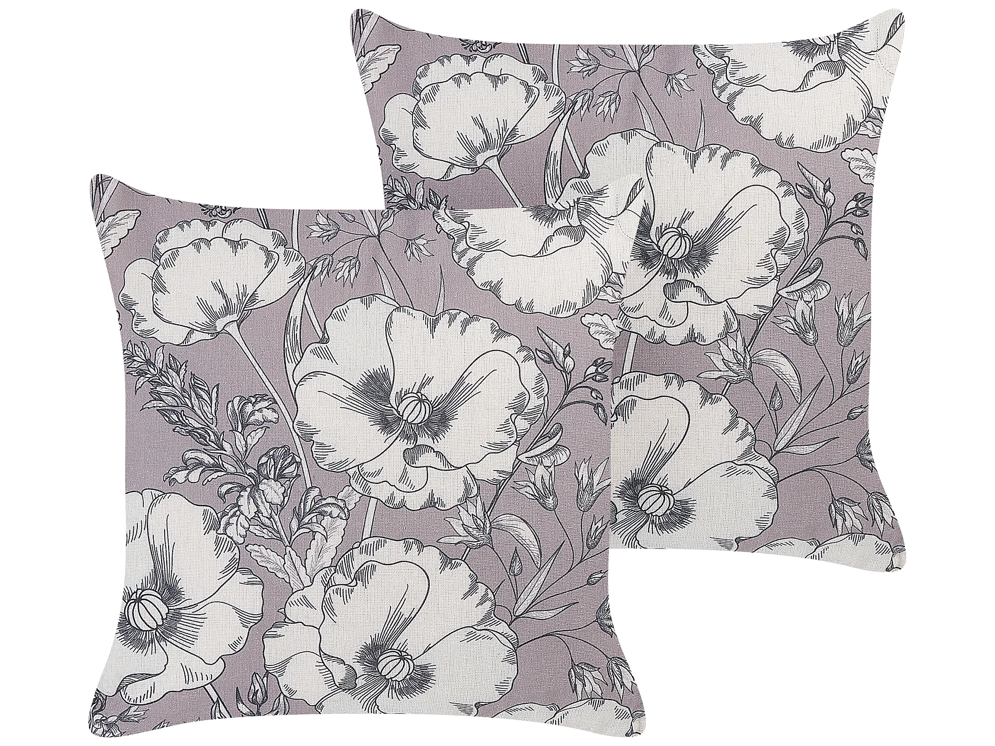 Dekokissen grau / weiß 45 x 45 cm quadratisch mit Blumenmotiv 2er Set Sophora