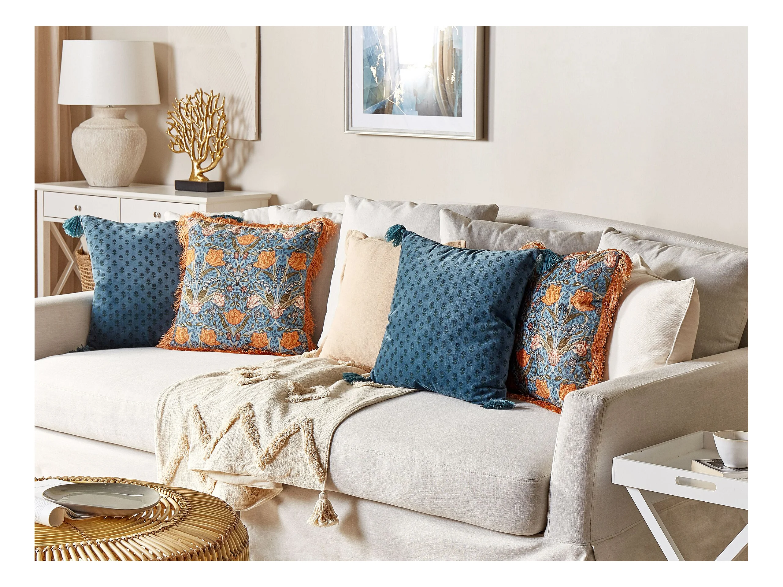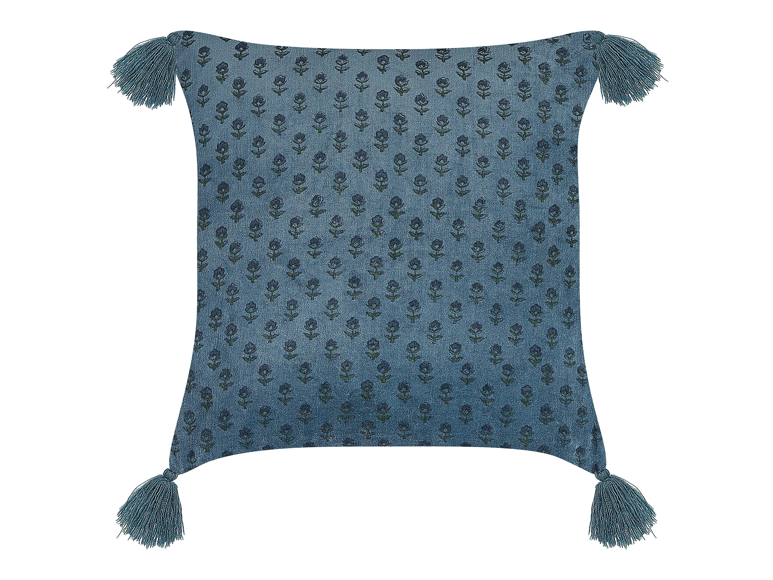 Dekokissen mit Füllung Quasten Blumenmuster blau Samt 45 x 45 cm Modern Ribes