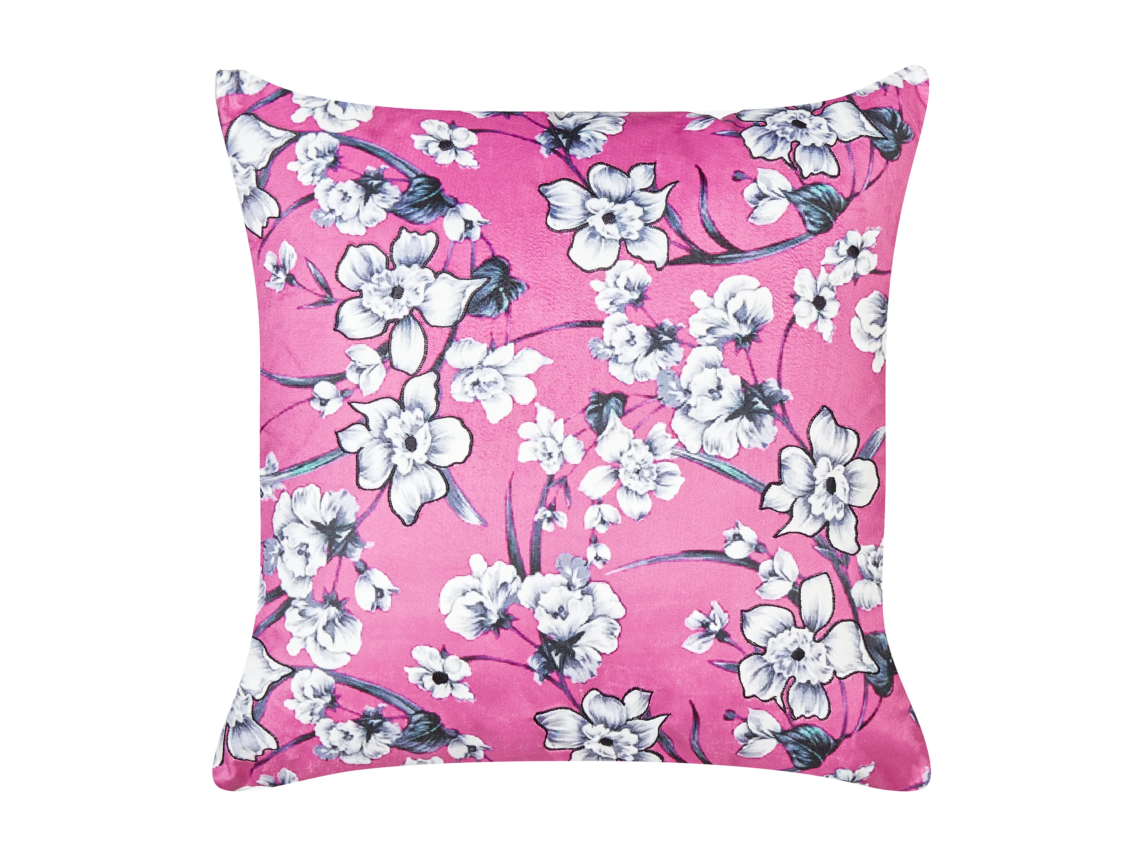 Dekokissen 2er Set Samtstoff rosa Blumenmuster 45 x 45 cm mit Füllung Koeleria