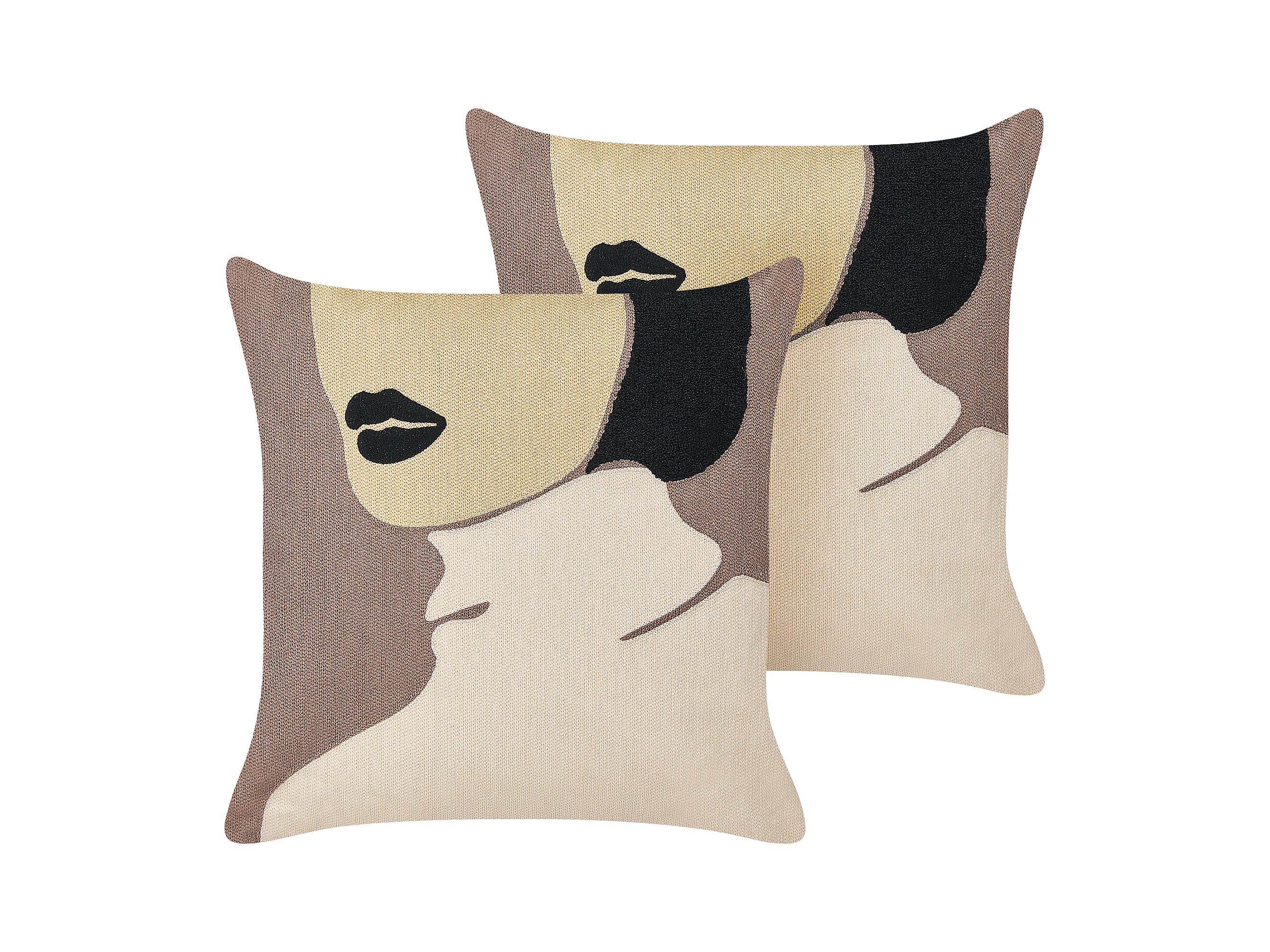 Dekokissen 2er Set Baumwolle braun / beige mit Frauenmotiv 45 x 45 cm Silphium