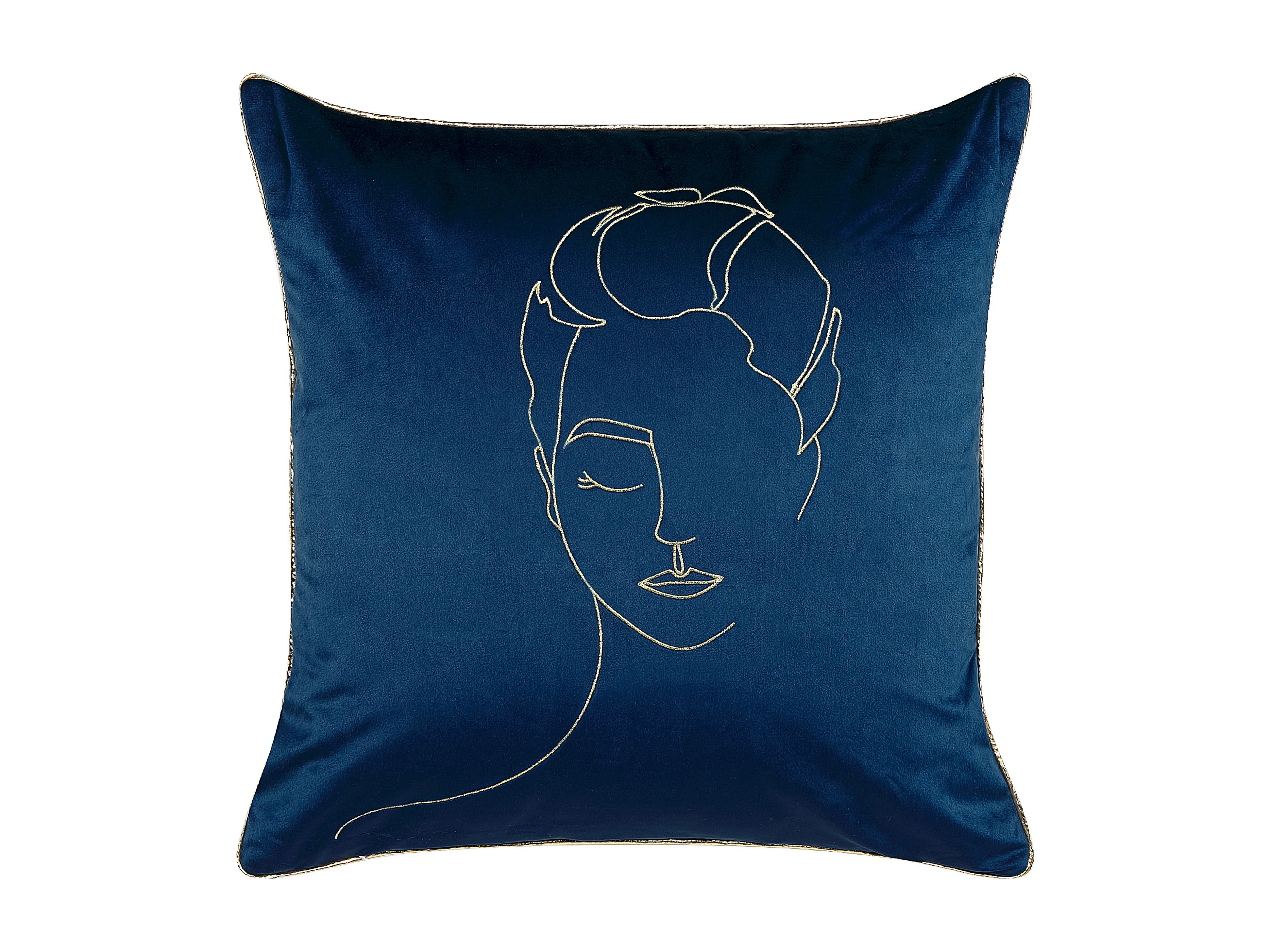 Dekokissen mit Füllung 2er Set Samt blau / gold Gesichtsmotiv 45 x 45 cm Crocus