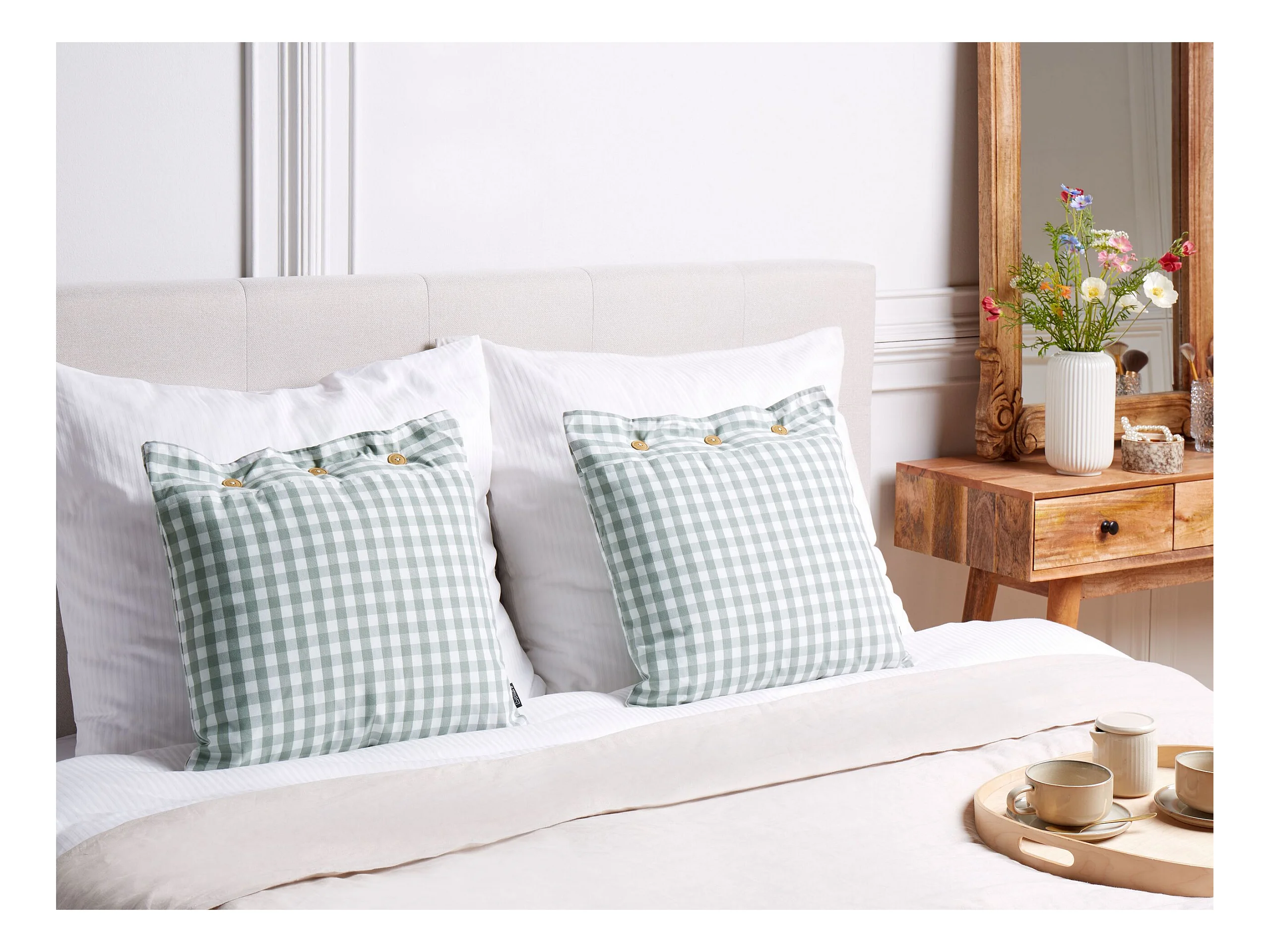 Dekokissen 2er Set grün / weiß kariertes Muster 45 x 45 cm mit Knöpfen Talya