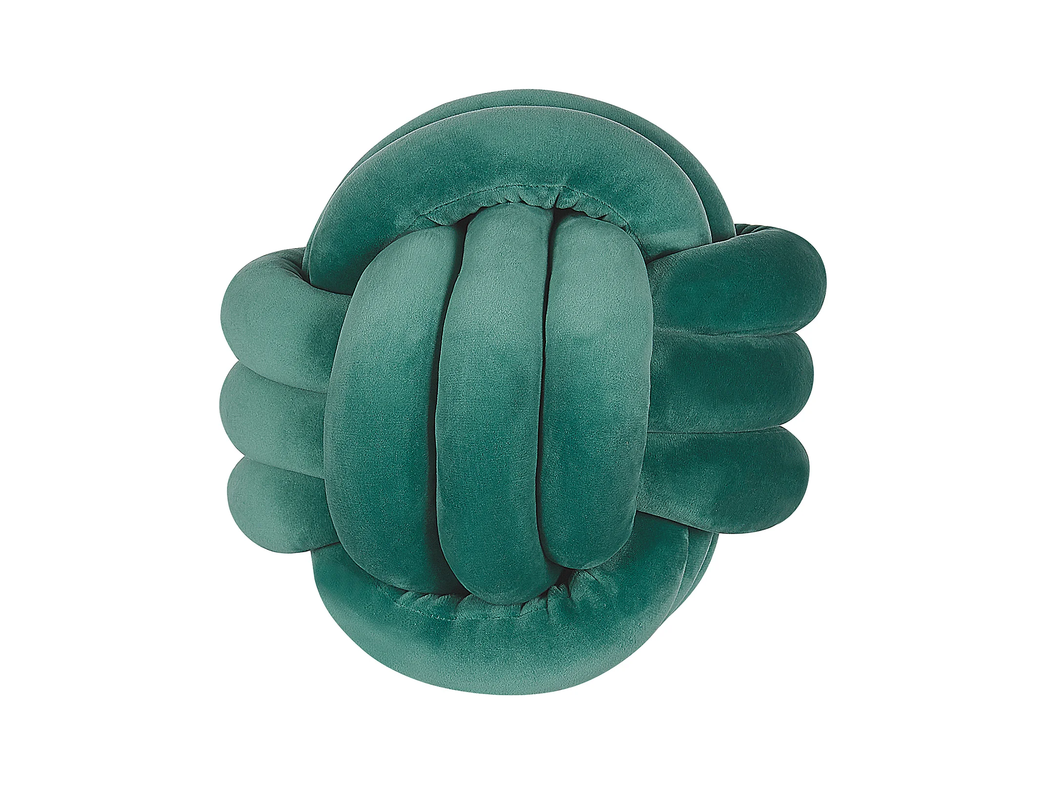 Modernes Knoten-Ball Dekokissen Samtstoff grün rund 30 x 30 cm Malni