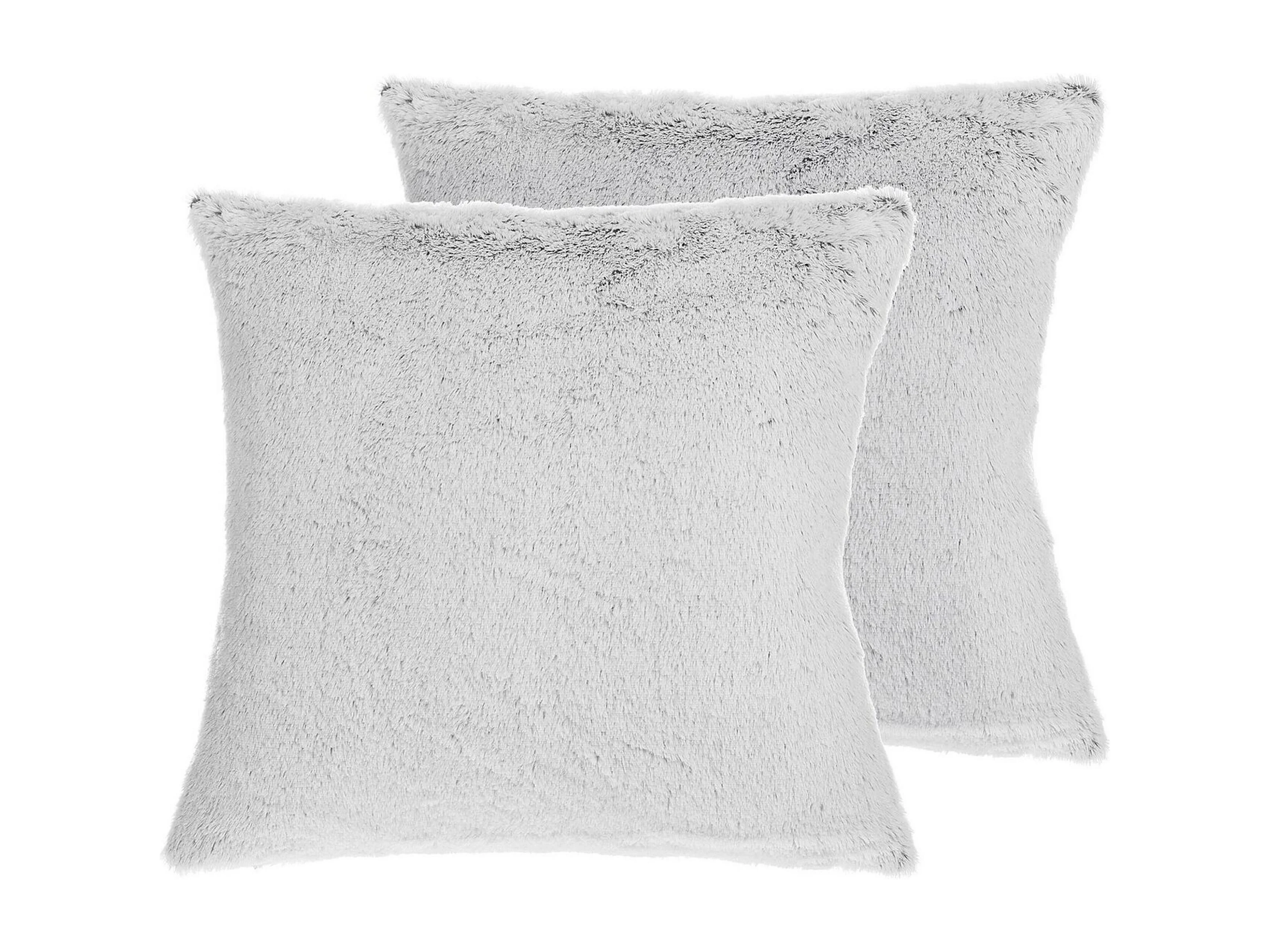 Dekokissen 2er Set 45 x 45 cm Kunstfell flauschig Plüsch grau hellgrau Clematis