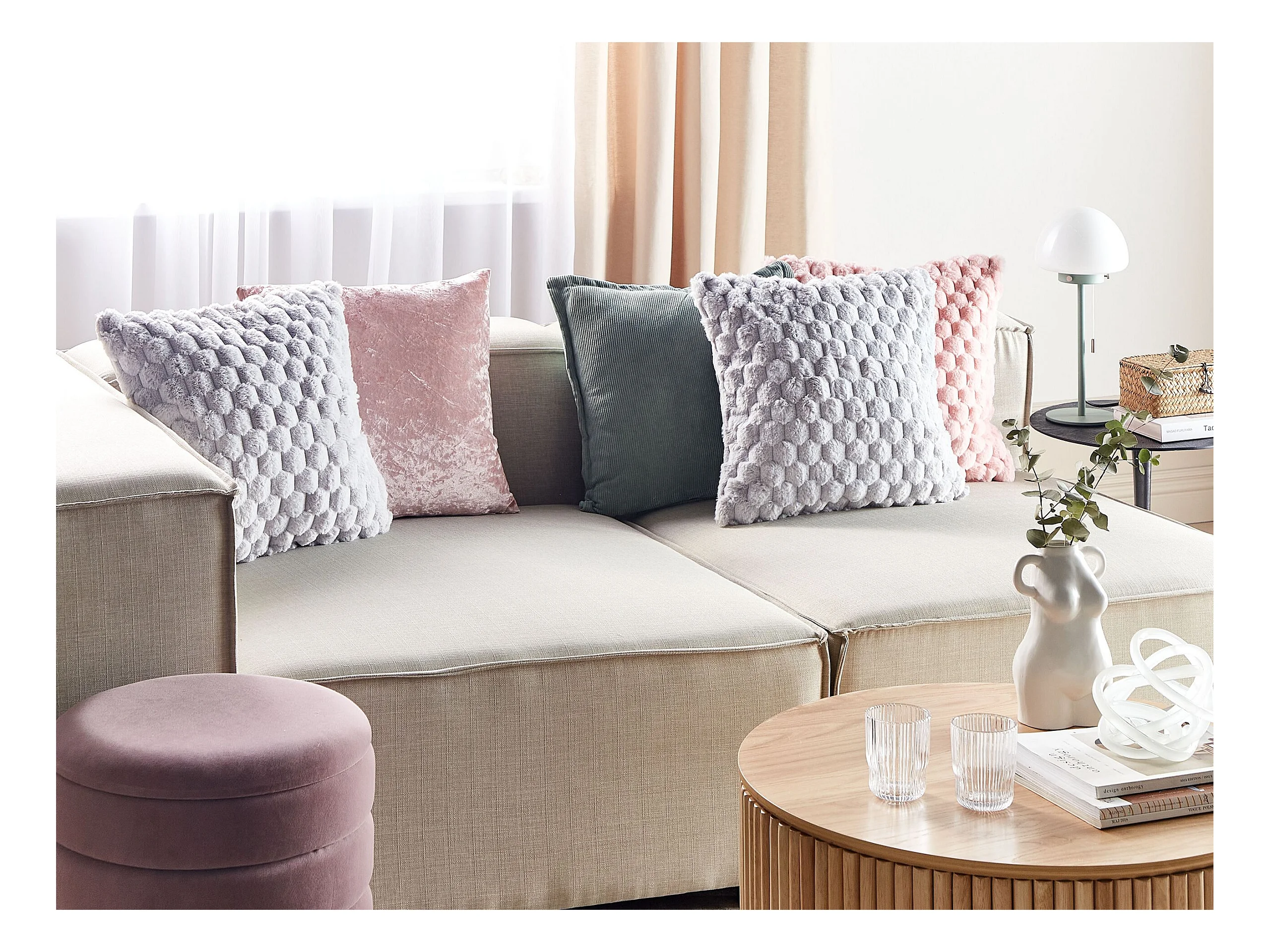 Dekokissen 2er Set PURSLANE Webpelz 43 x 43 cm Hellgrau Geometrisches Muster