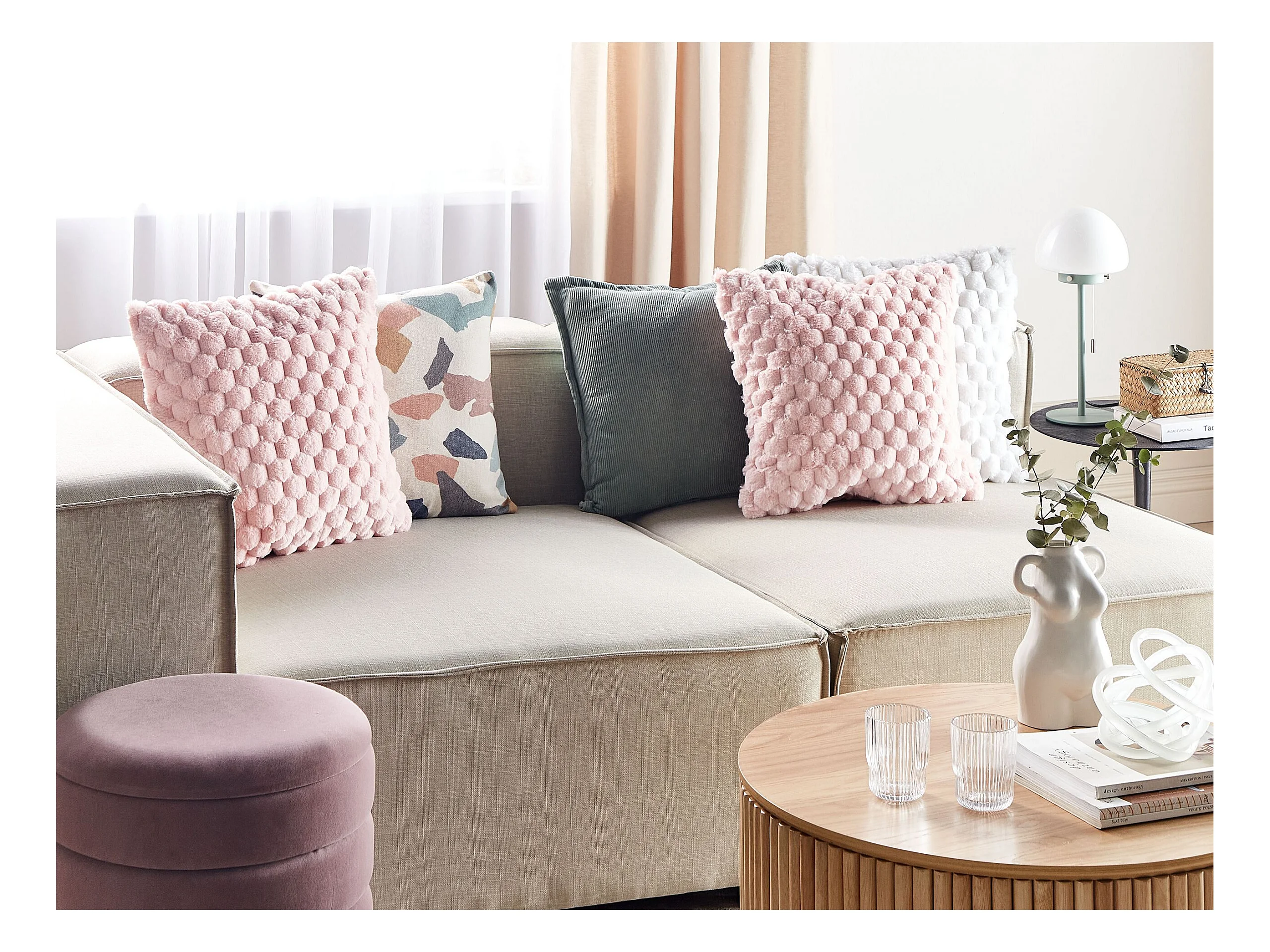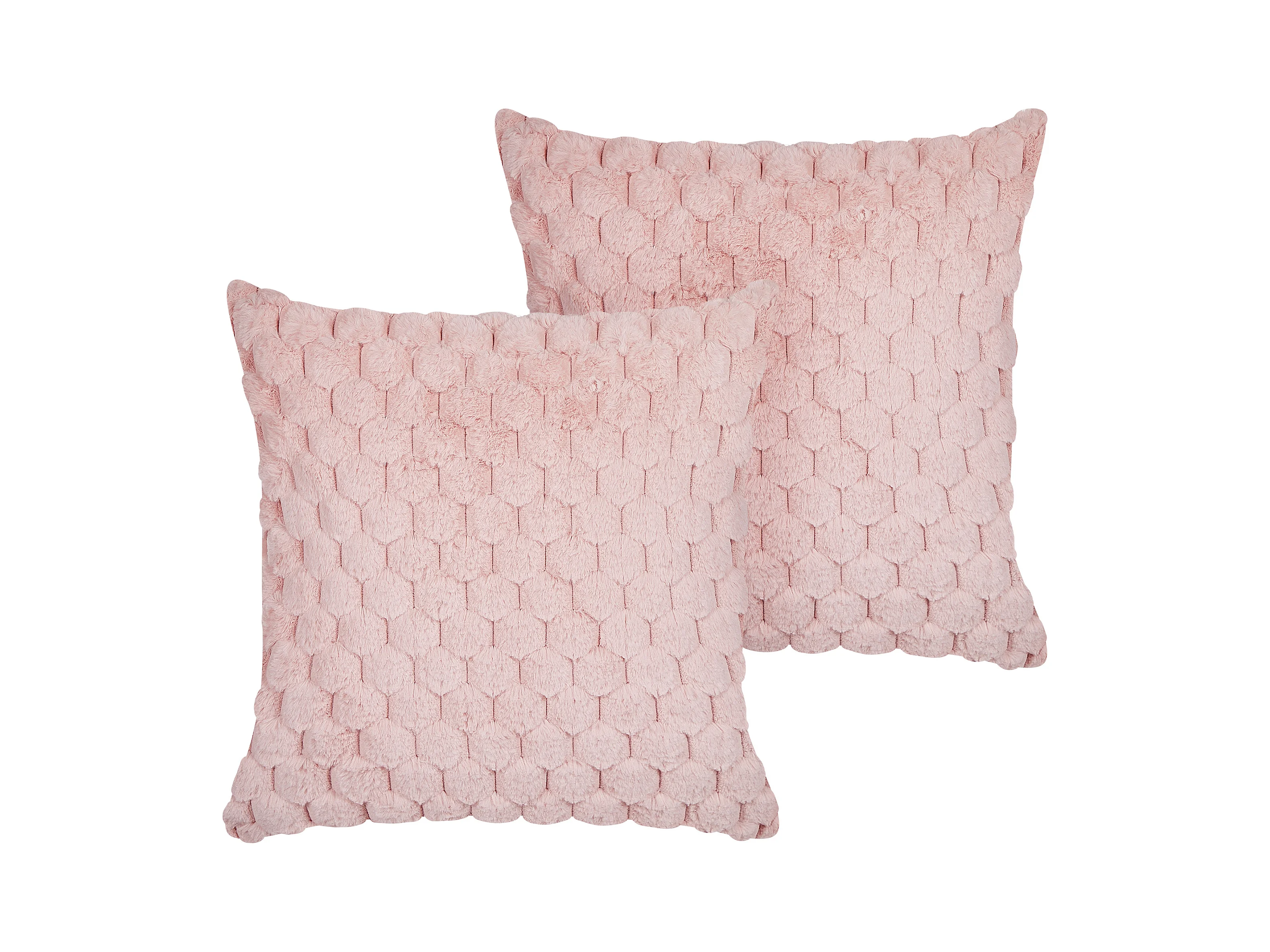 Set aus 2 dekorativen Streukissen aus Kunstfell 43 x 43 cm HRosa Purslane