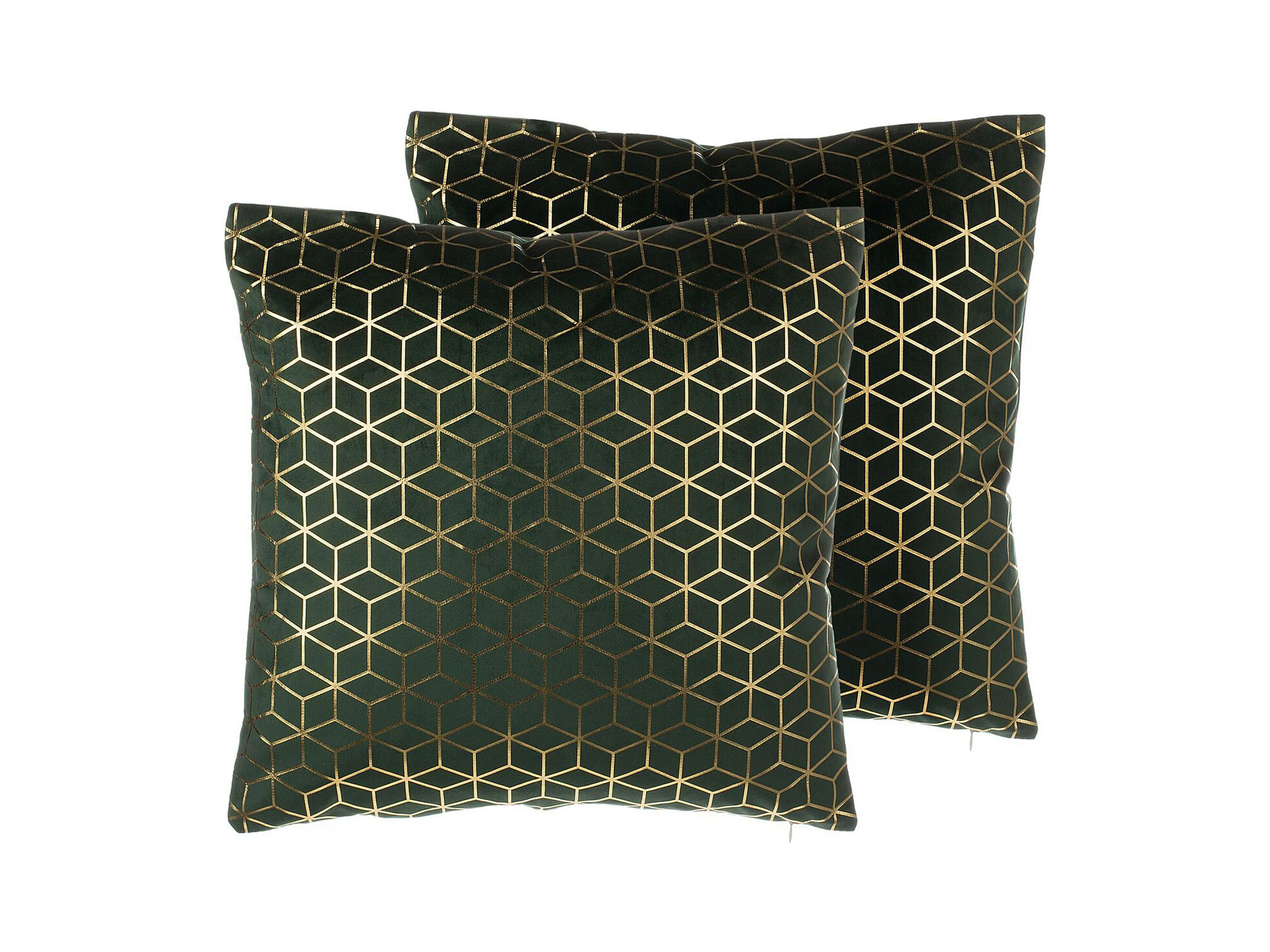 Dekokissen 2er Set 45 x 45 cm Samtstoff Netzmuster dunkelgrün gold Celosia