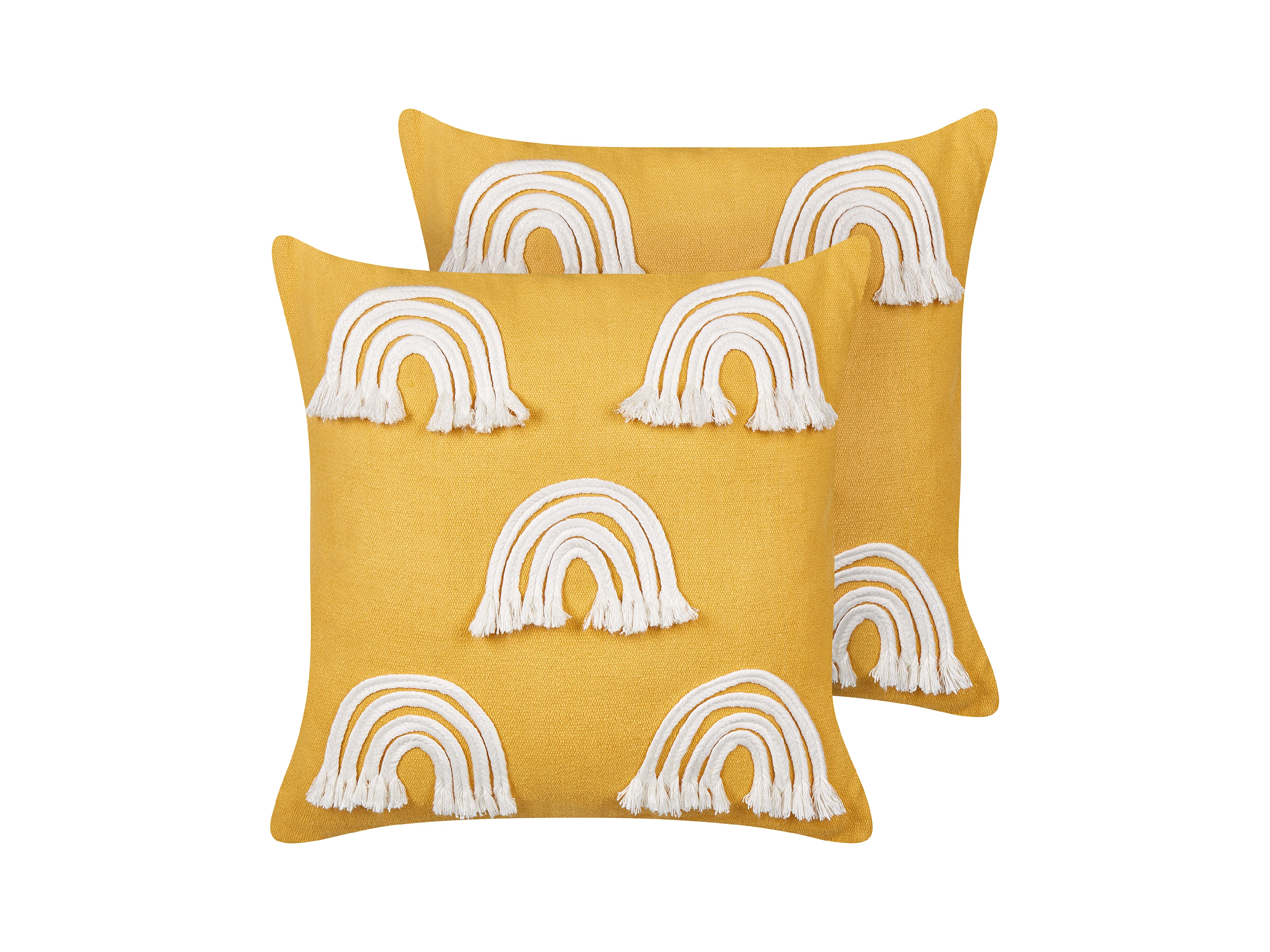 Dekokissen 2er Set Baumwolle gelb 45x45 cm Regenbogen bestickt Kinderzimmer Leea