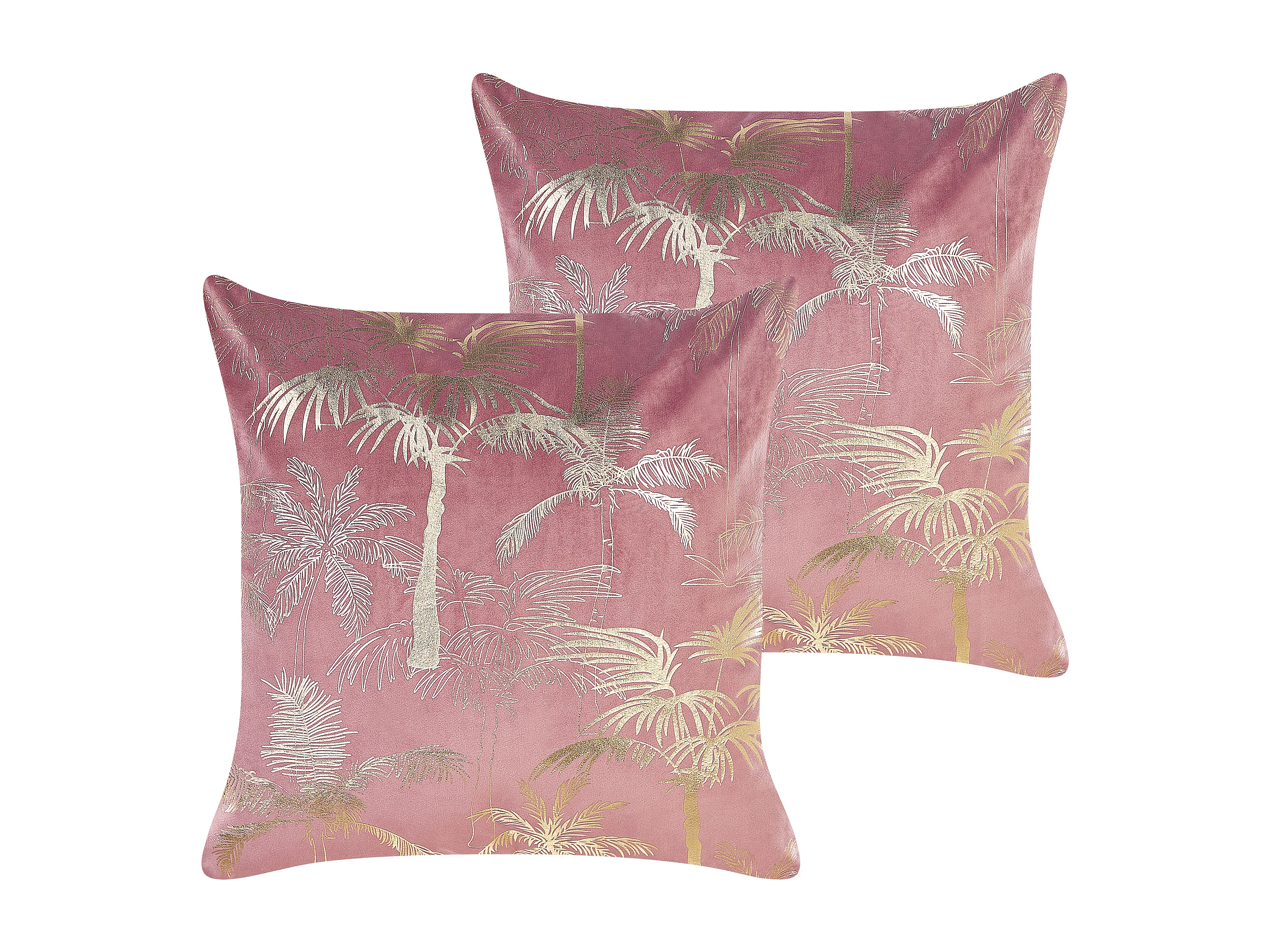 2 er-Set Dekokissen aus Samt 45 x 45 cm mit Palmen Motiv Rosa Caranday
