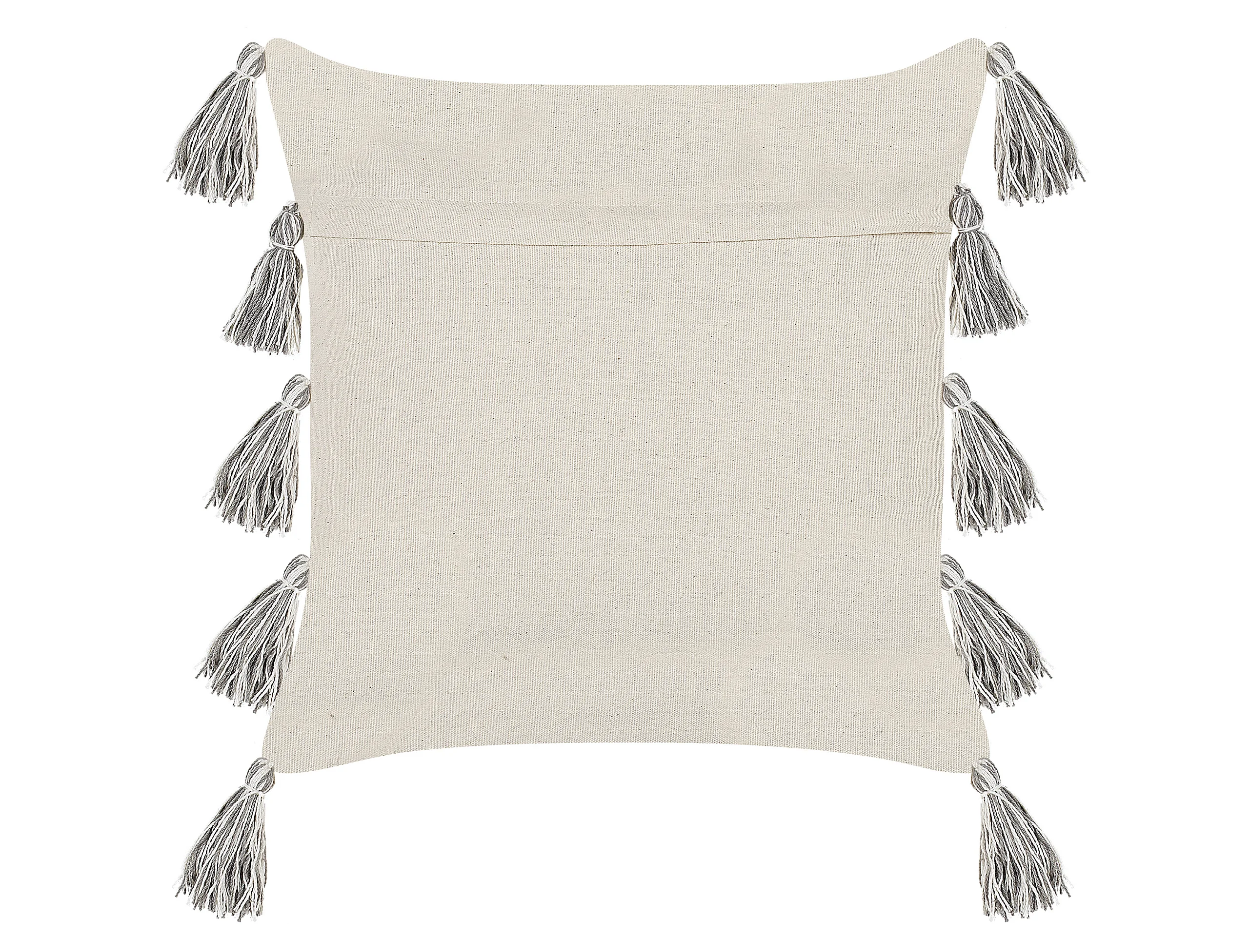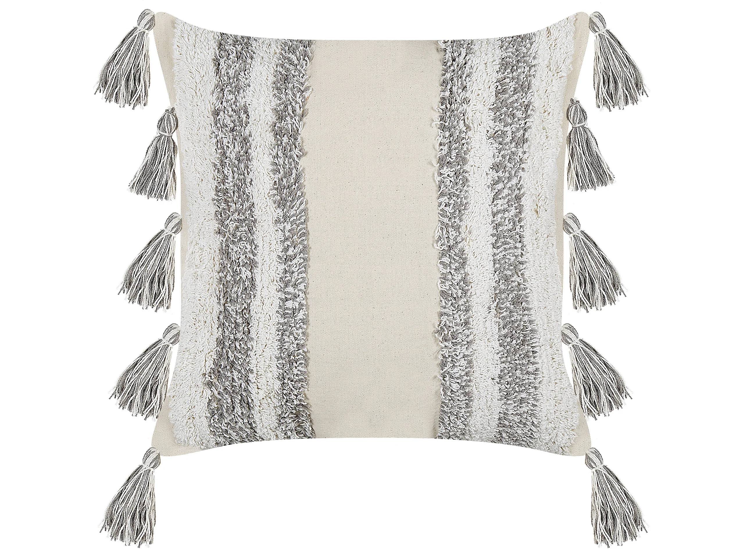 Dekoratives Fransenkissen aus Baumwolle beige / grau 45 x 45 cm HELICONIA