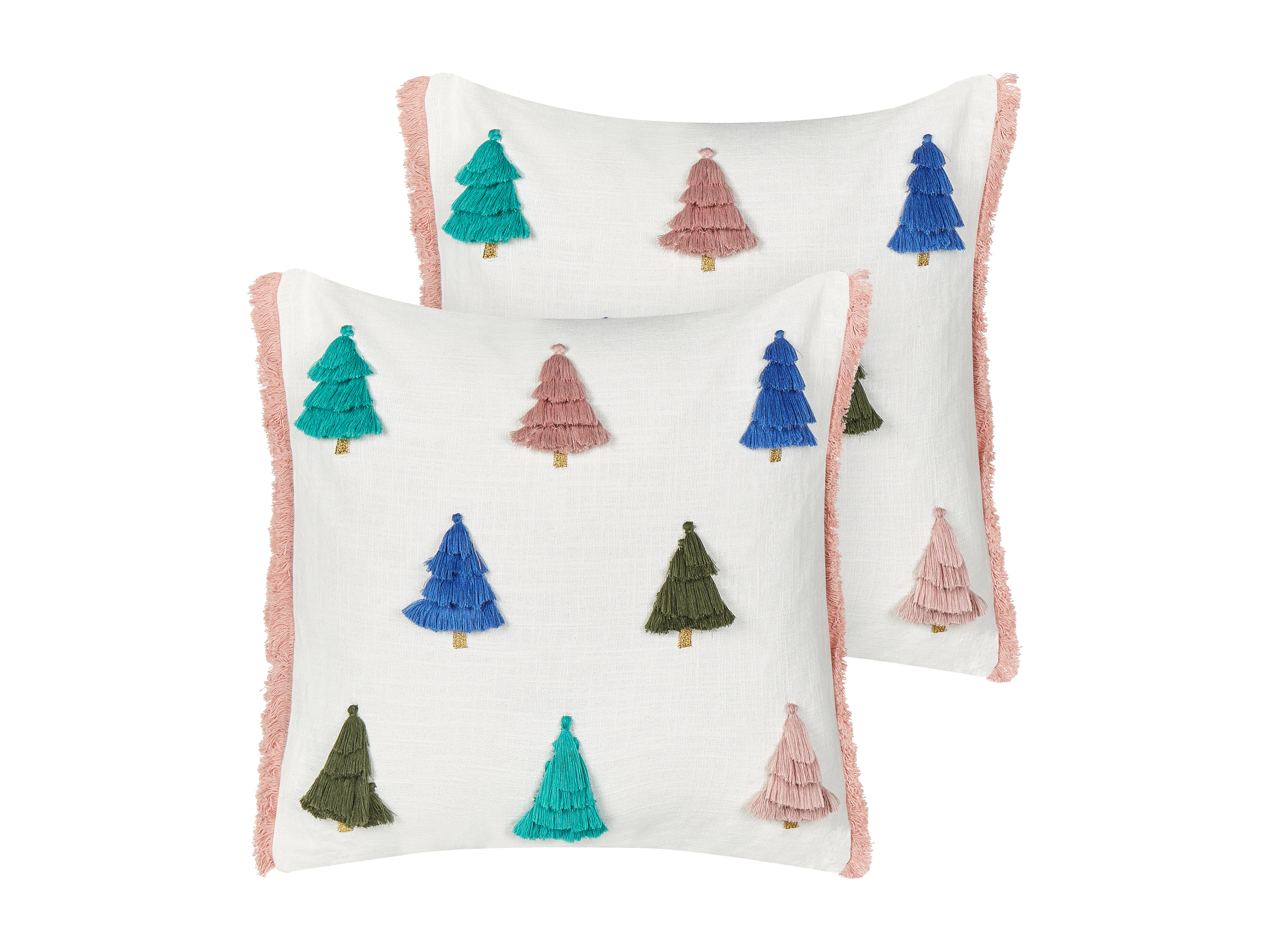 Dekokissen 2er Set SKIMMIA Baumwolle 45 x 45 cm Weiss Weihnachtsmotiv
