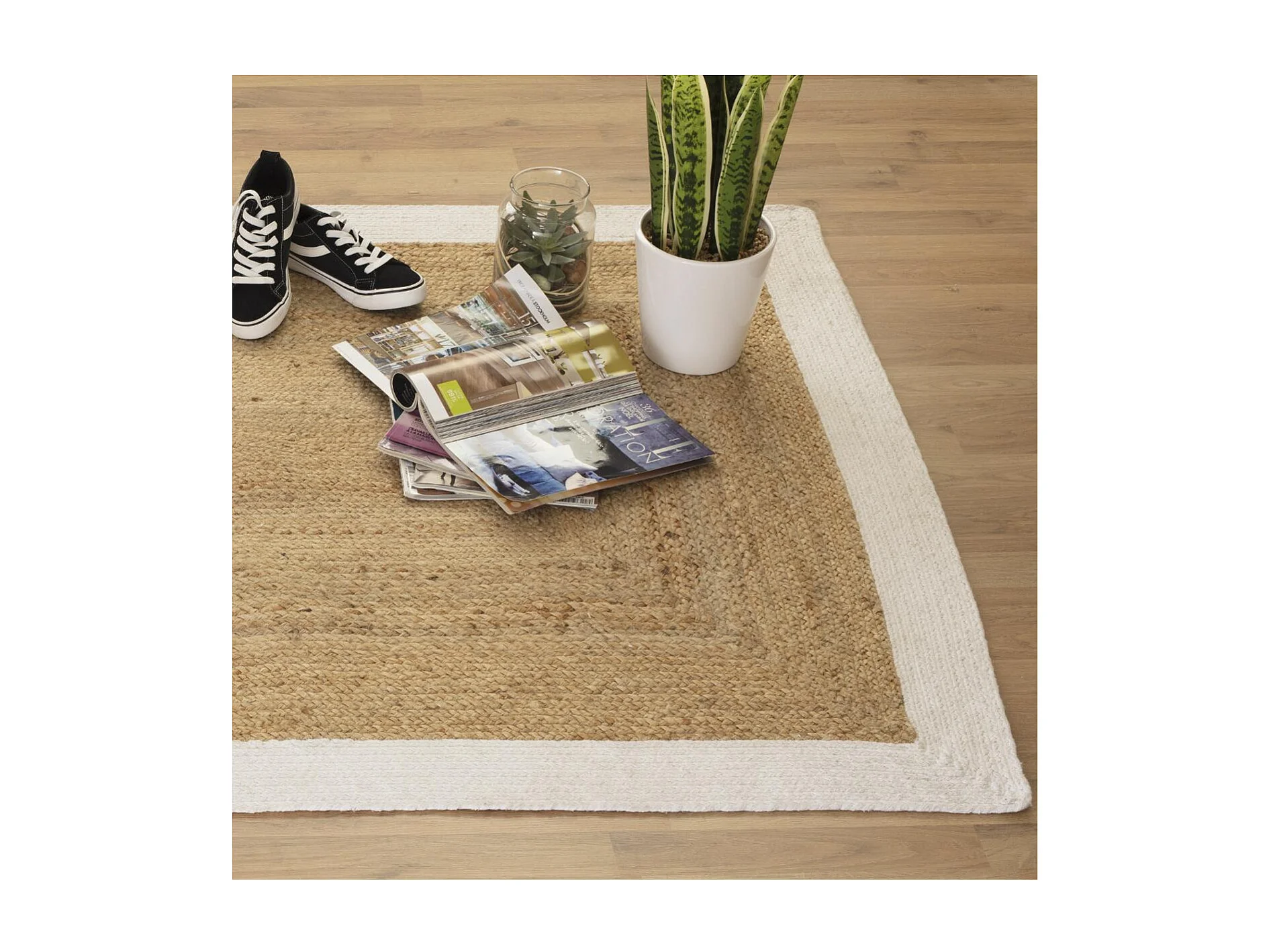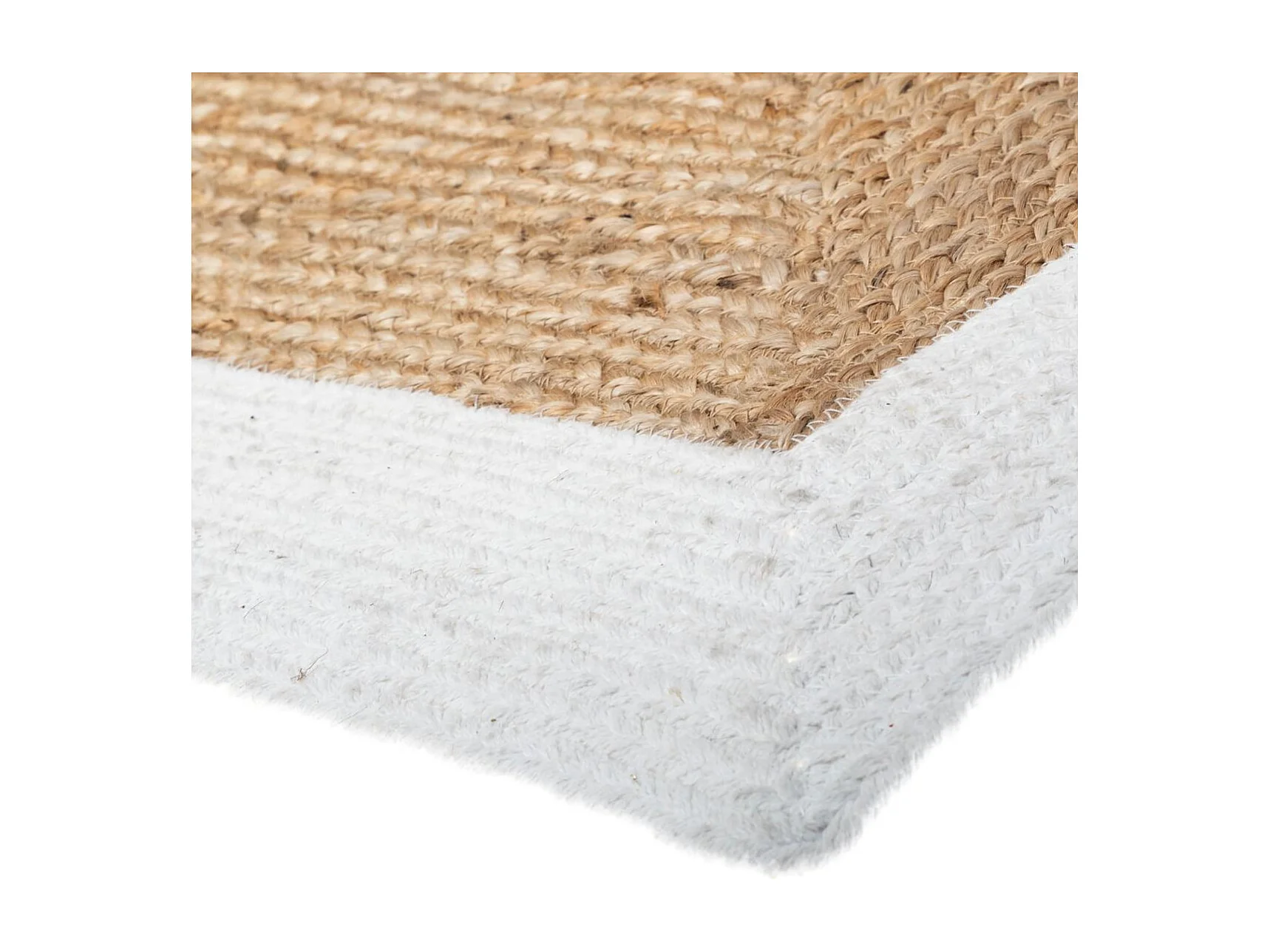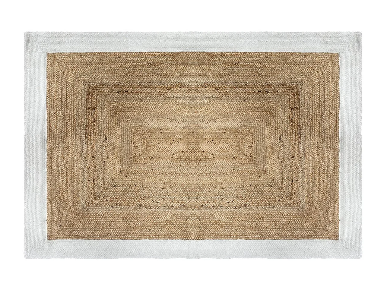 Dekorations-Teppich aus natürlichem Jute 120x170 cm mit weißem Baumwollrand, 1 cm Dicke, authentischer und natürlicher Stil