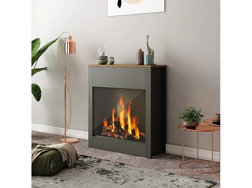 Dekorativer Holzrahmen für elektrischen Standkamin Buren - Schwarz