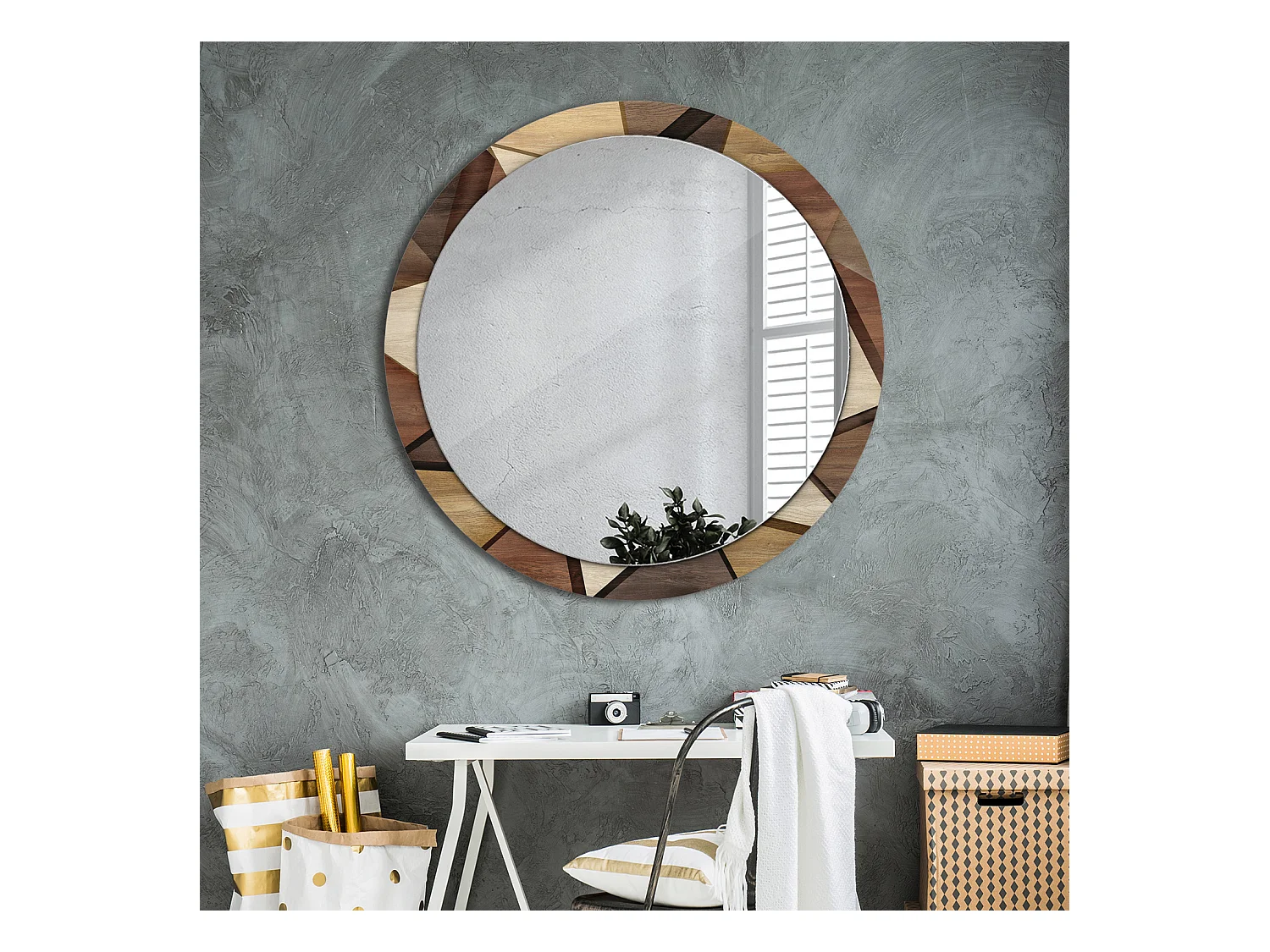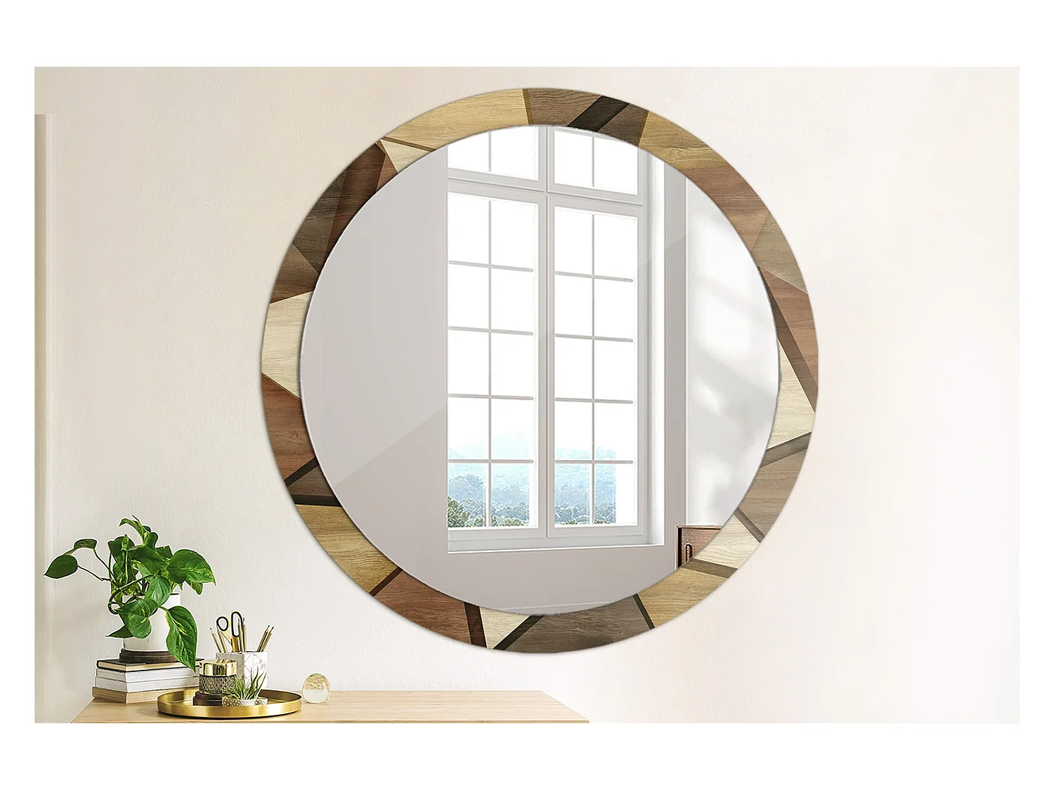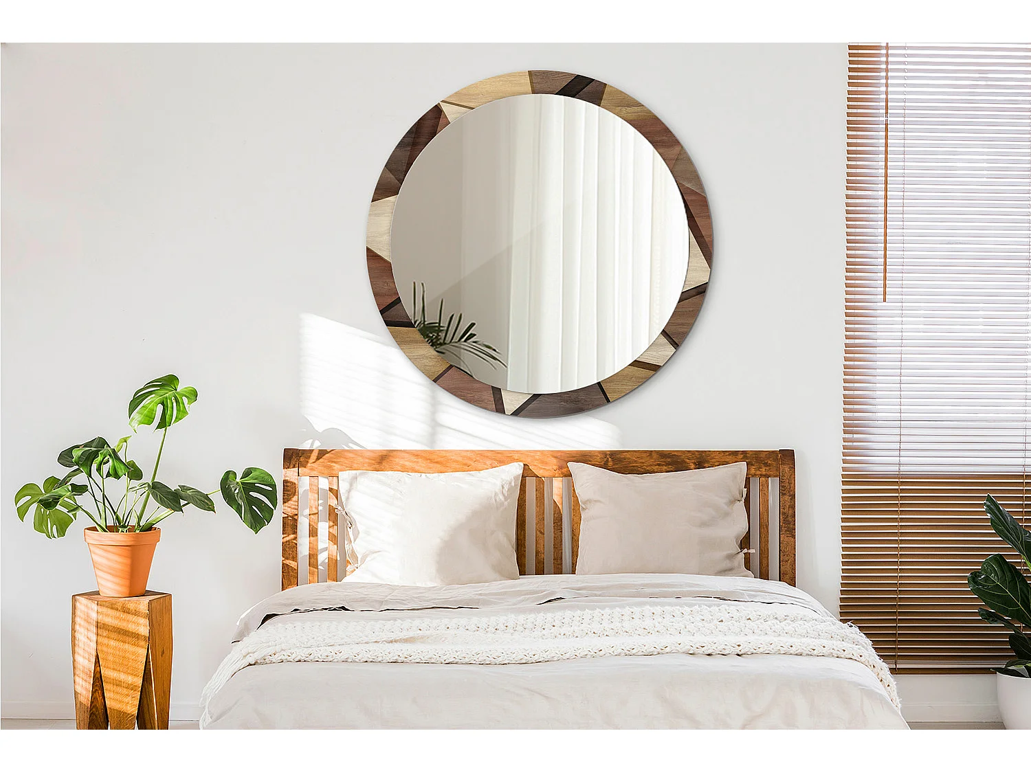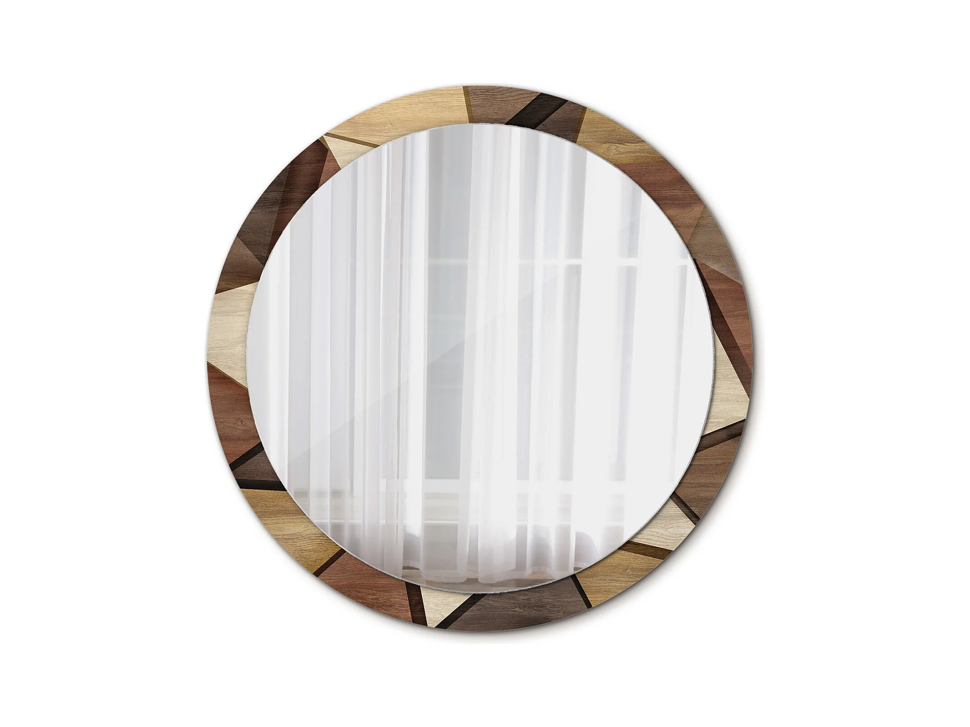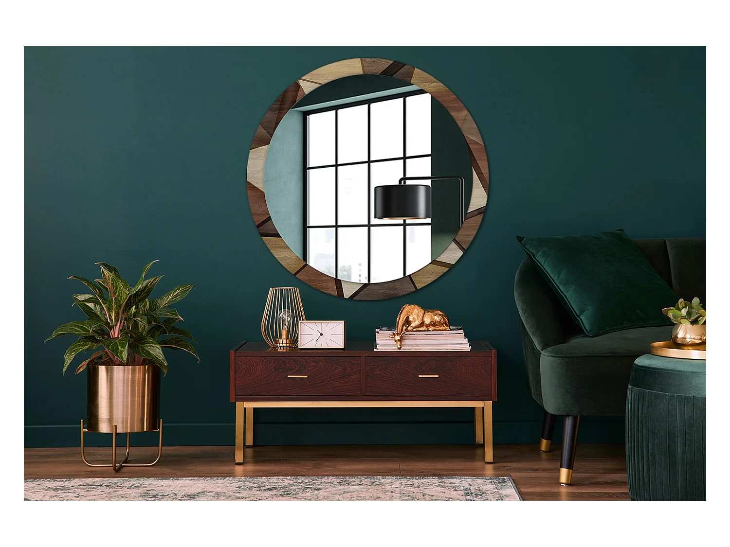 Dekorativer runder Spiegel – 3D-geometrisches Holz – 100 cm
