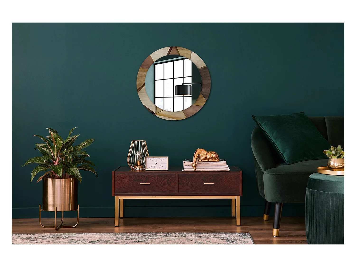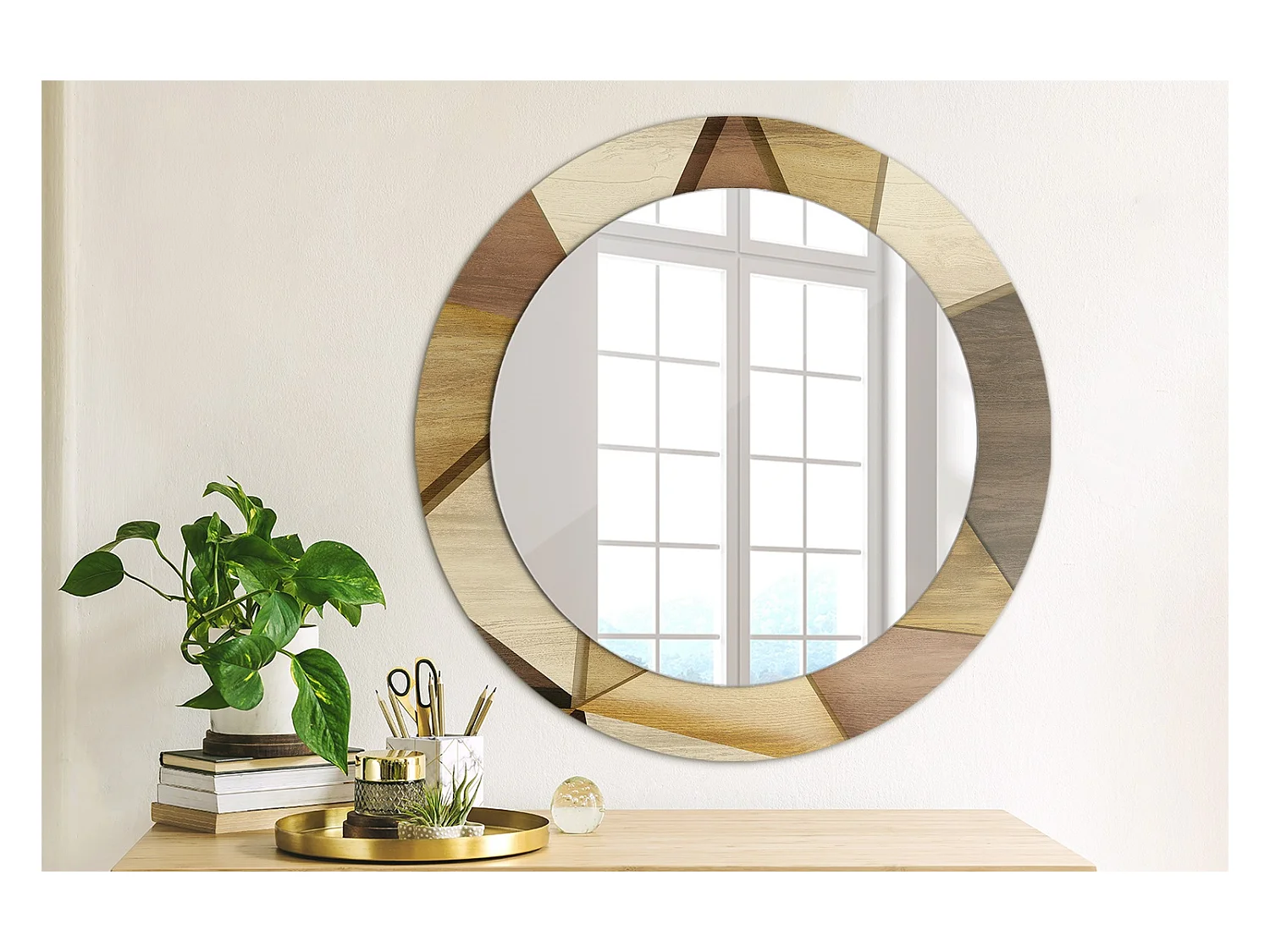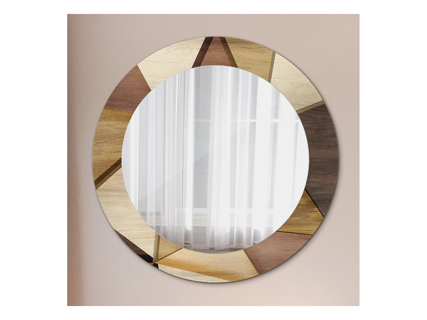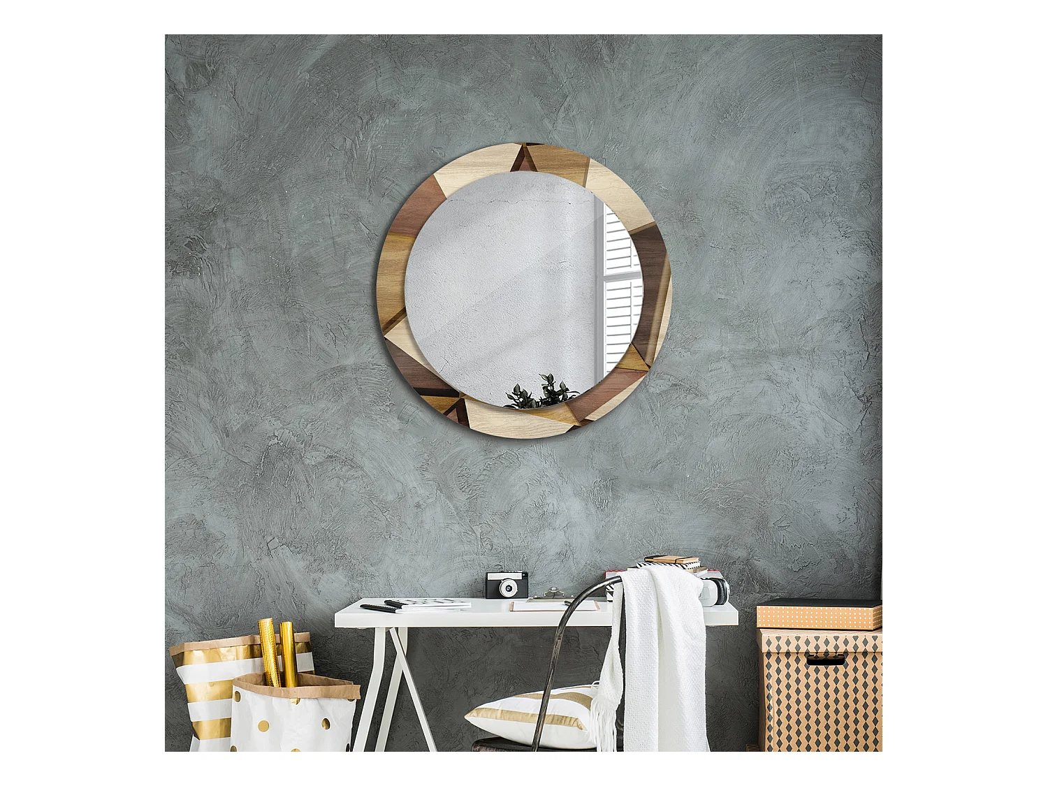 Dekorativer runder Spiegel – 3D-geometrisches Holz – 60 cm