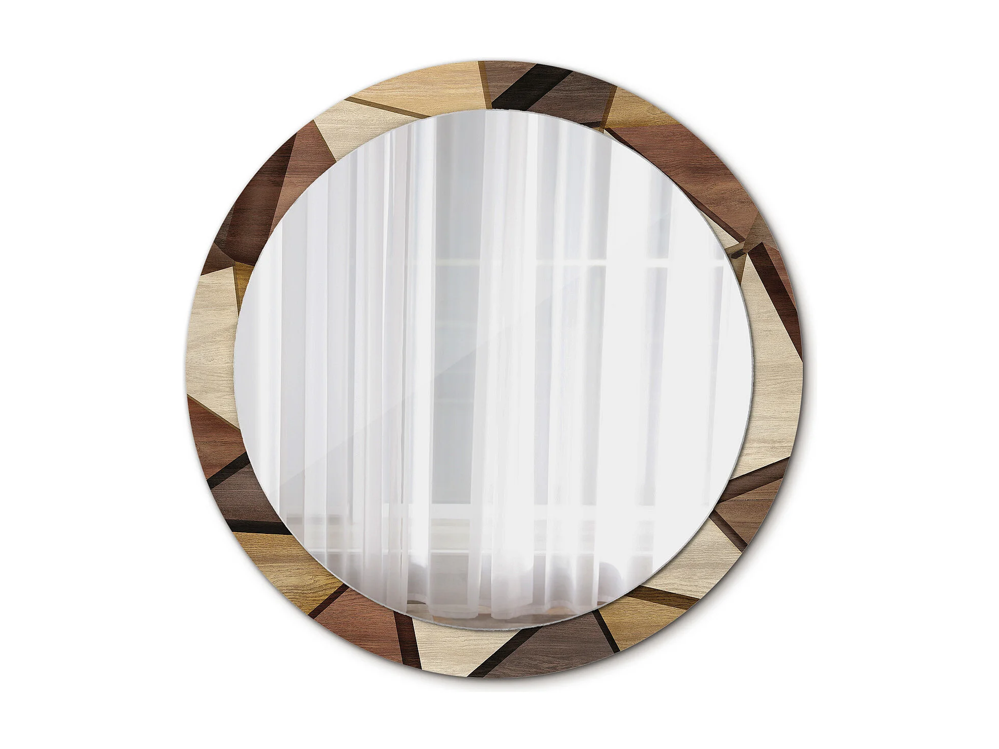 Dekorativer runder Spiegel – 3D-geometrisches Holz – 90 cm