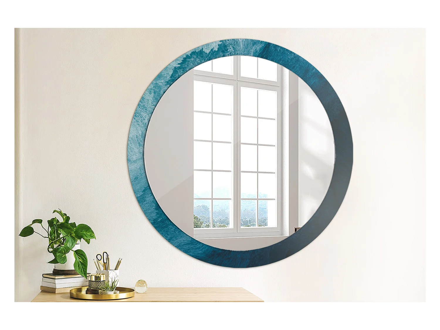 Dekorativer runder Spiegel - Abstrakte Kunst - 90 cm