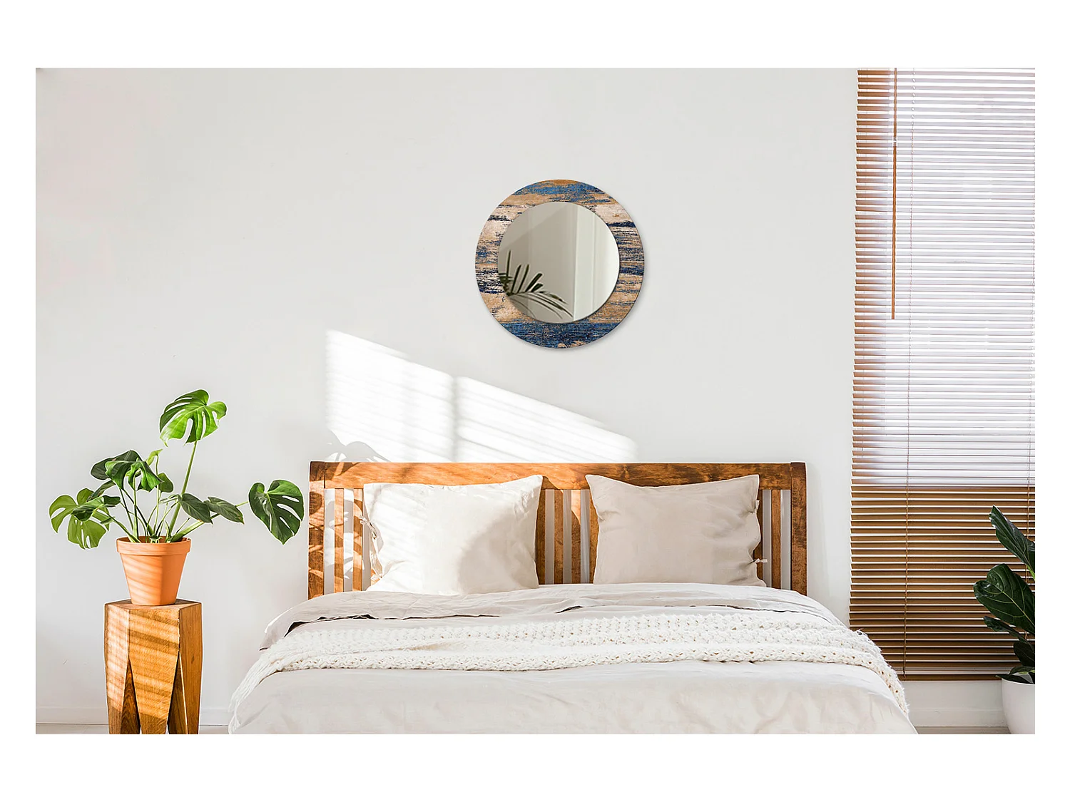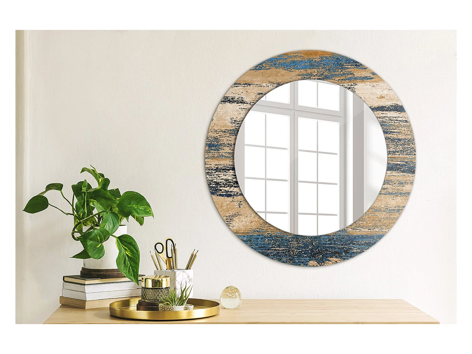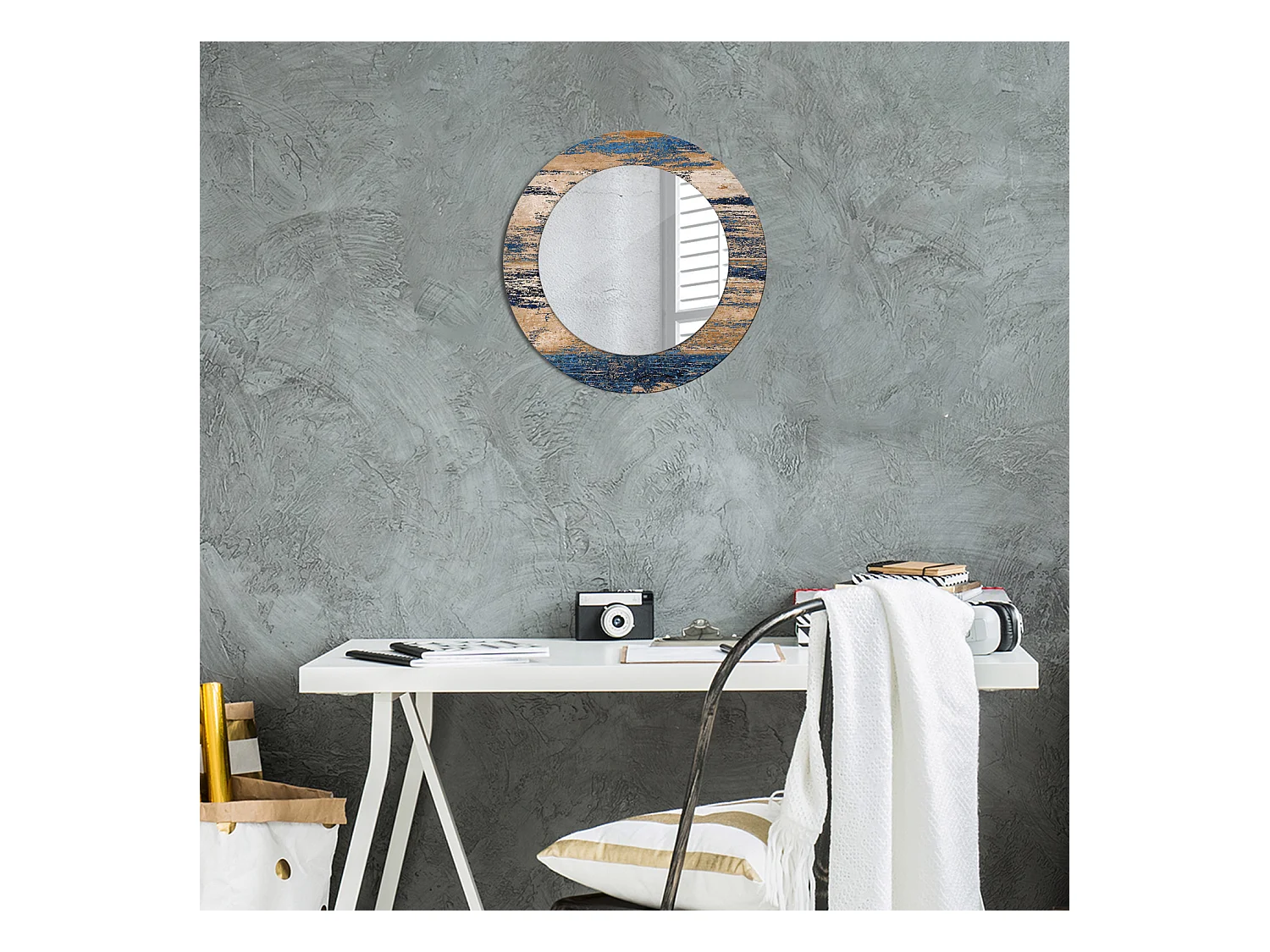 Dekorativer runder Spiegel - Abstraktes Holz - 50 cm