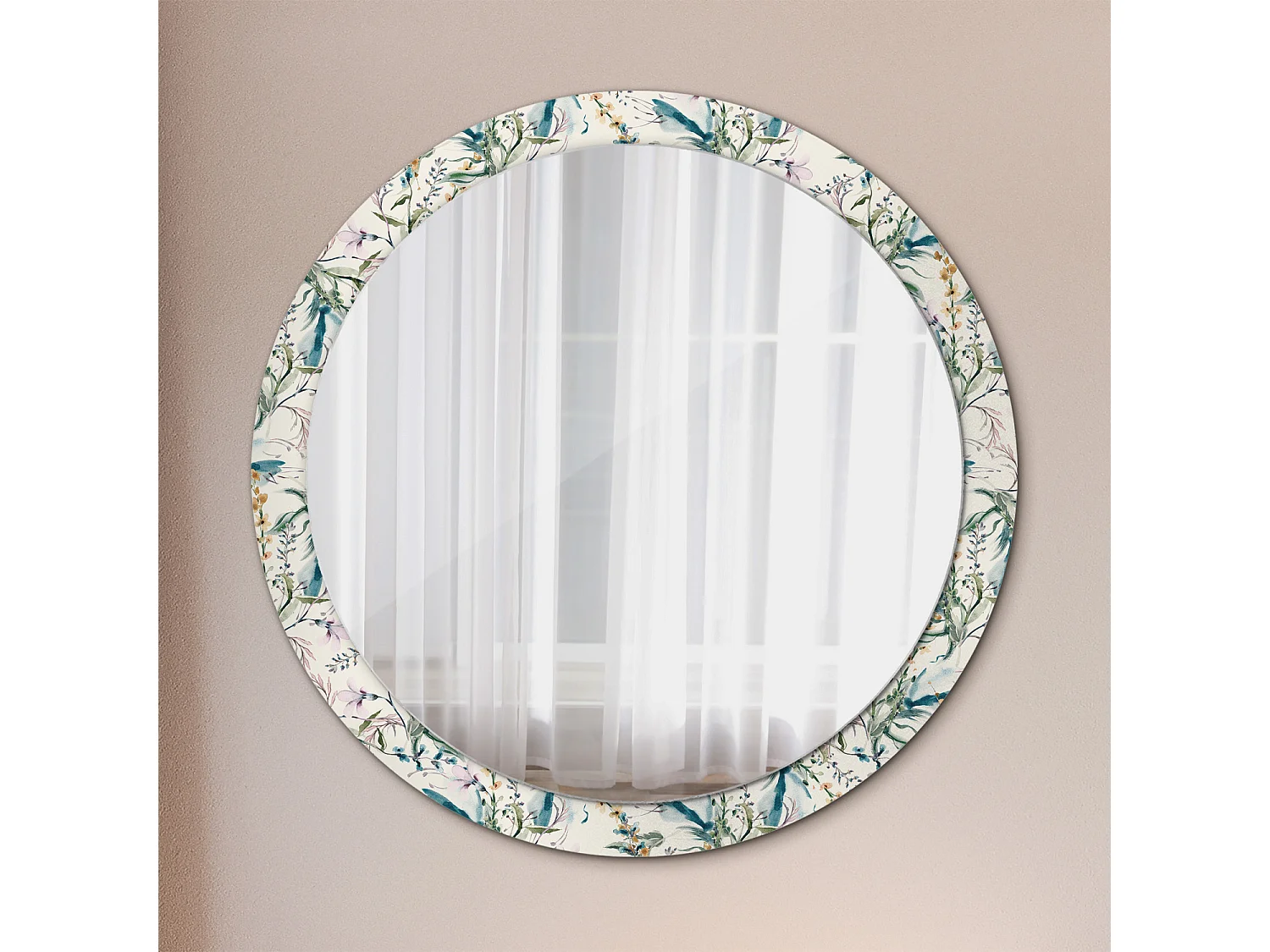 Dekorativer runder Spiegel - Aquarellblumen - 100 cm