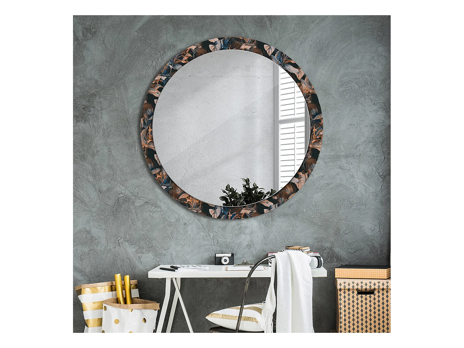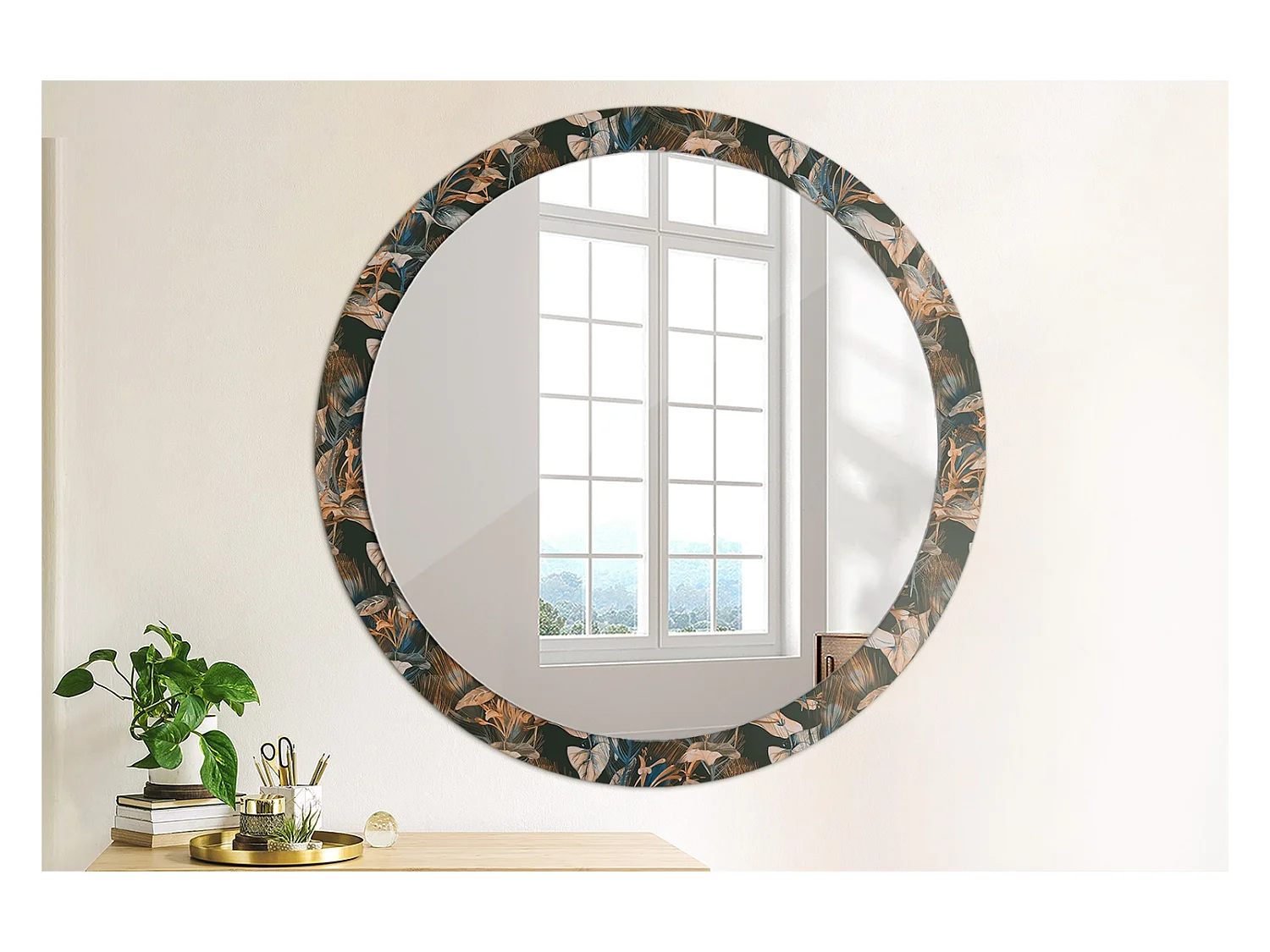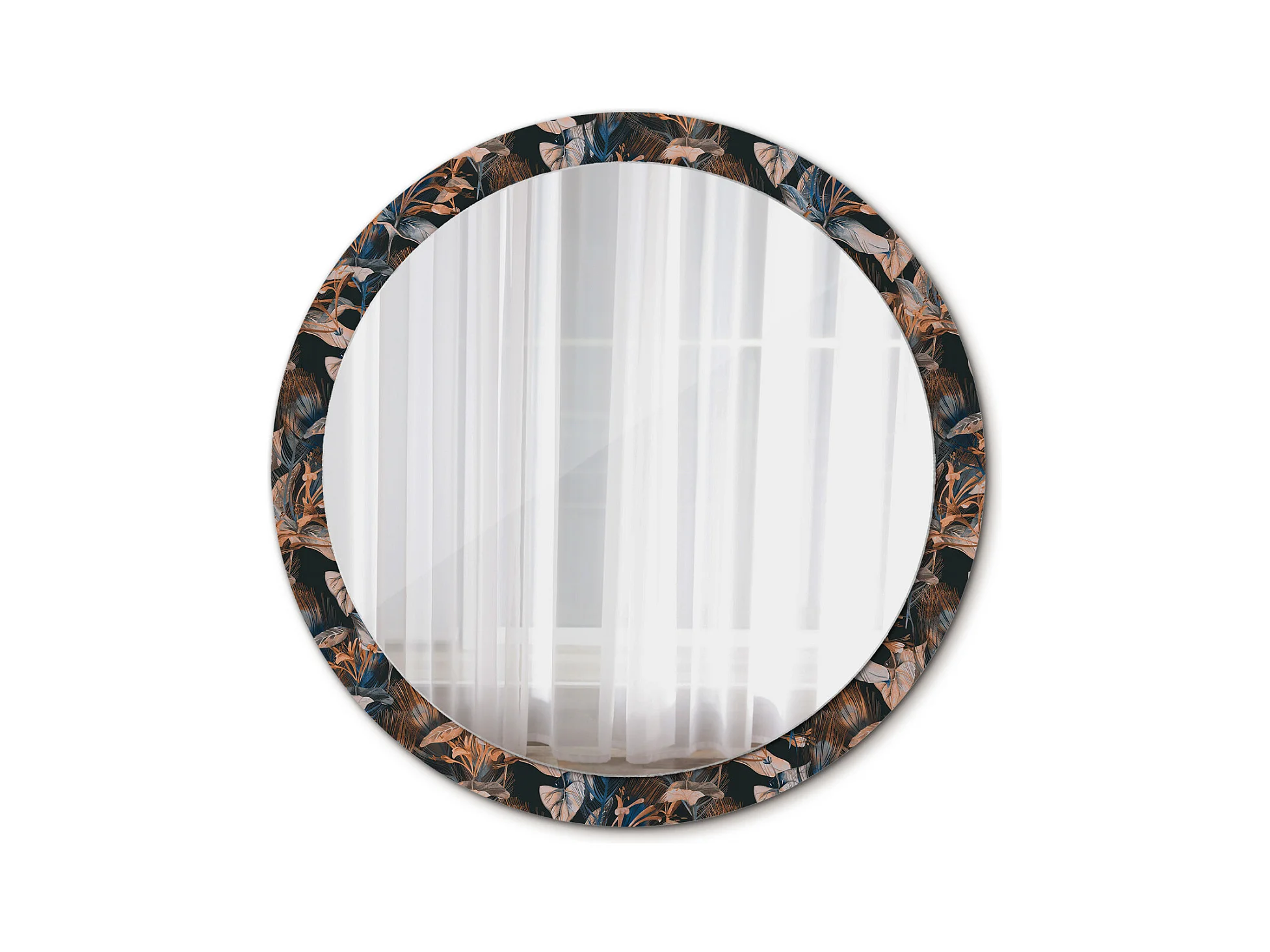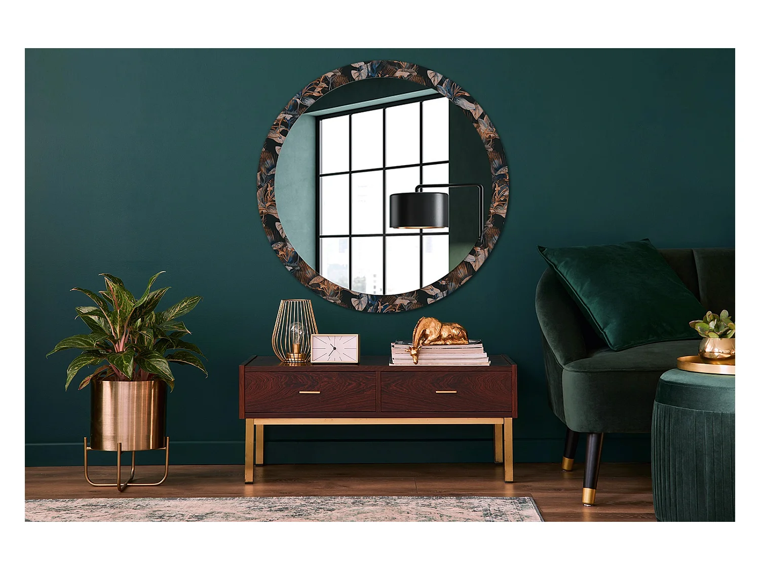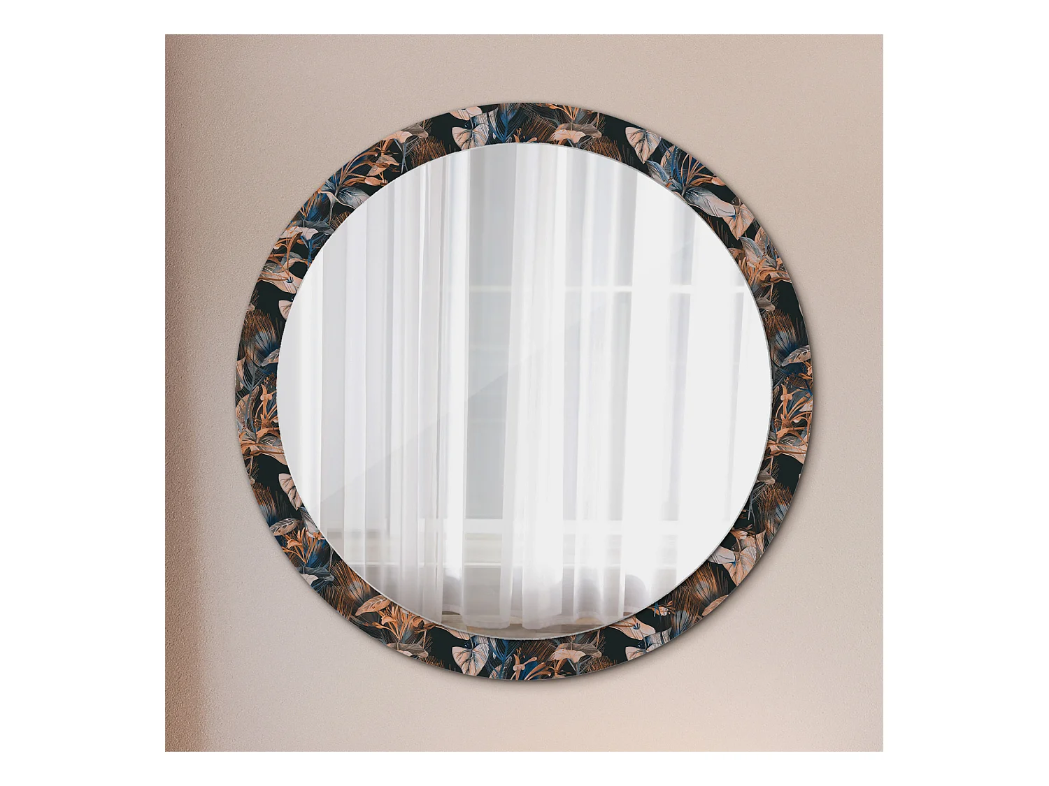 Dekorativer runder Spiegel – Dunkle tropische Blätter – 100 cm