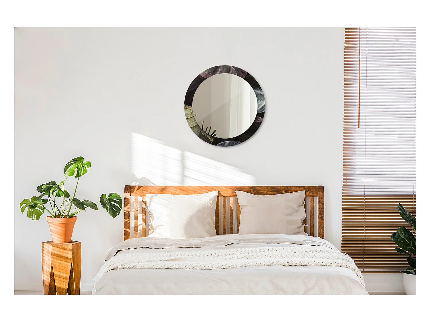 Dekorativer runder Spiegel – Dunkle tropische Blätter – 60 cm