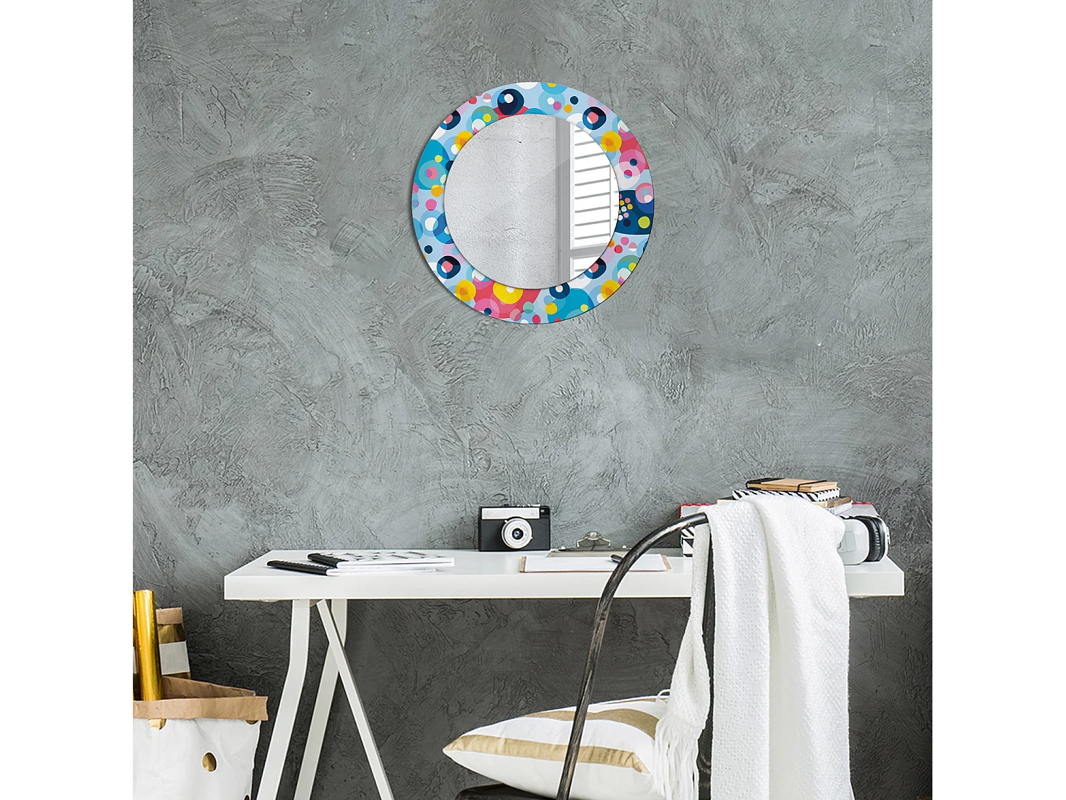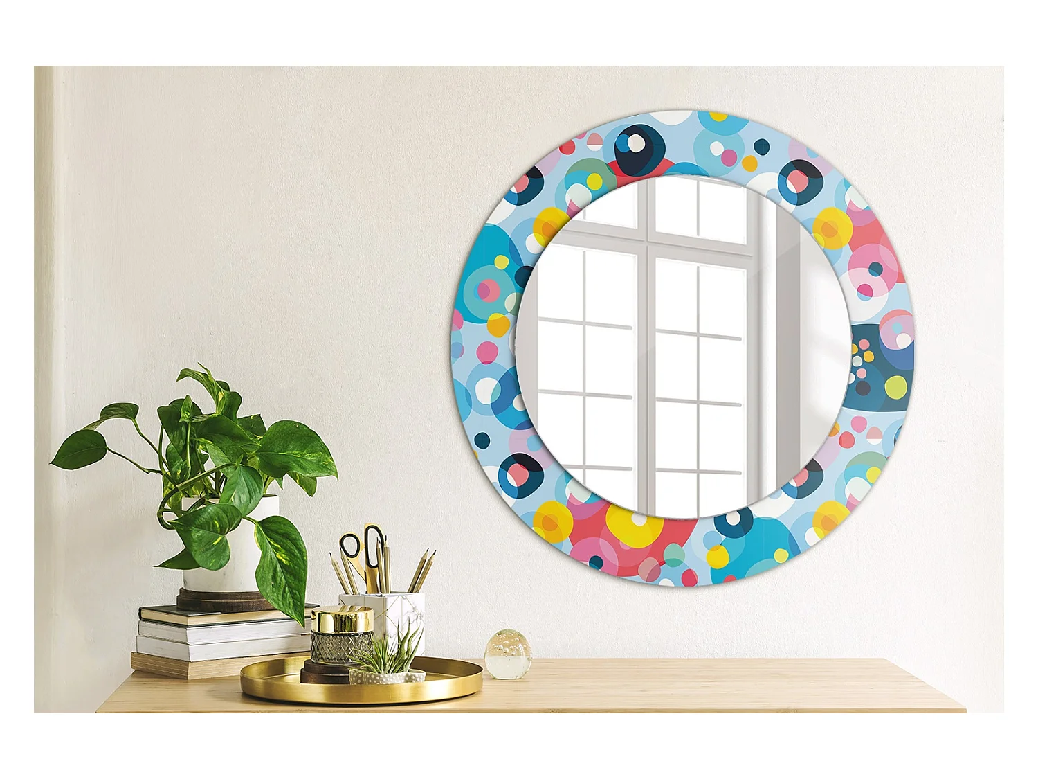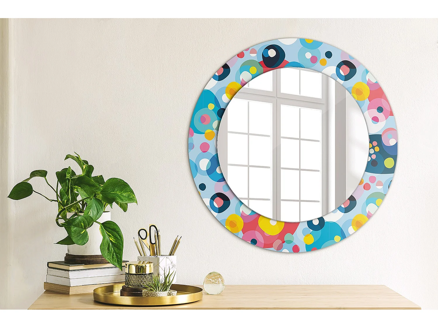 Dekorativer runder Spiegel – Farbige Kreise – 50 cm