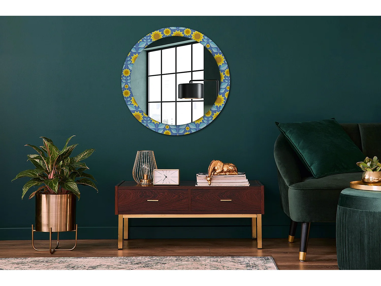Dekorativer runder Spiegel - Geometrische Sonnenblumen - 80 cm