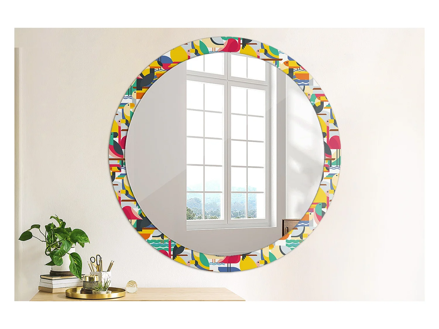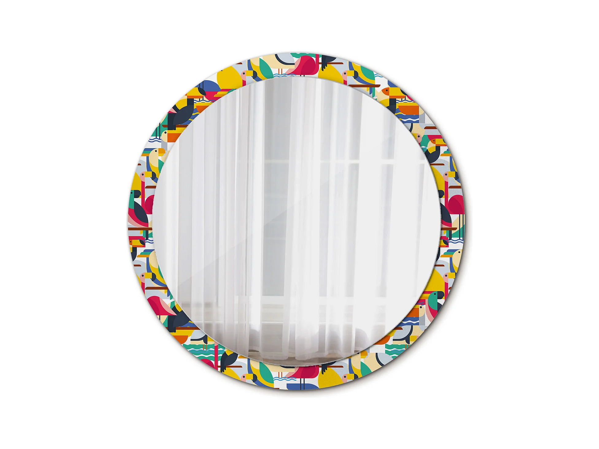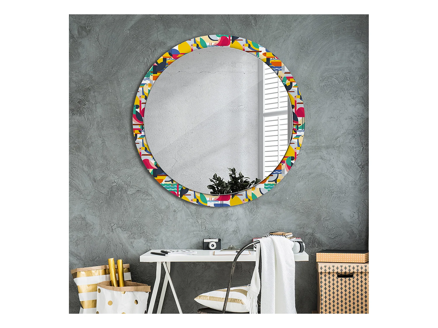Dekorativer runder Spiegel - Geometrische tropische Vögel - 100 cm