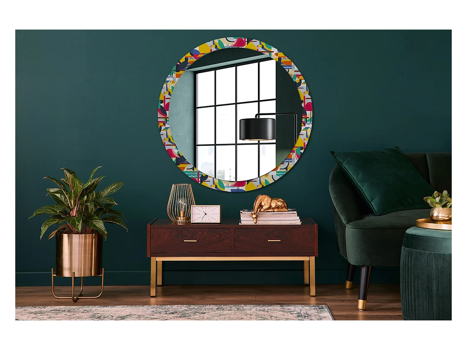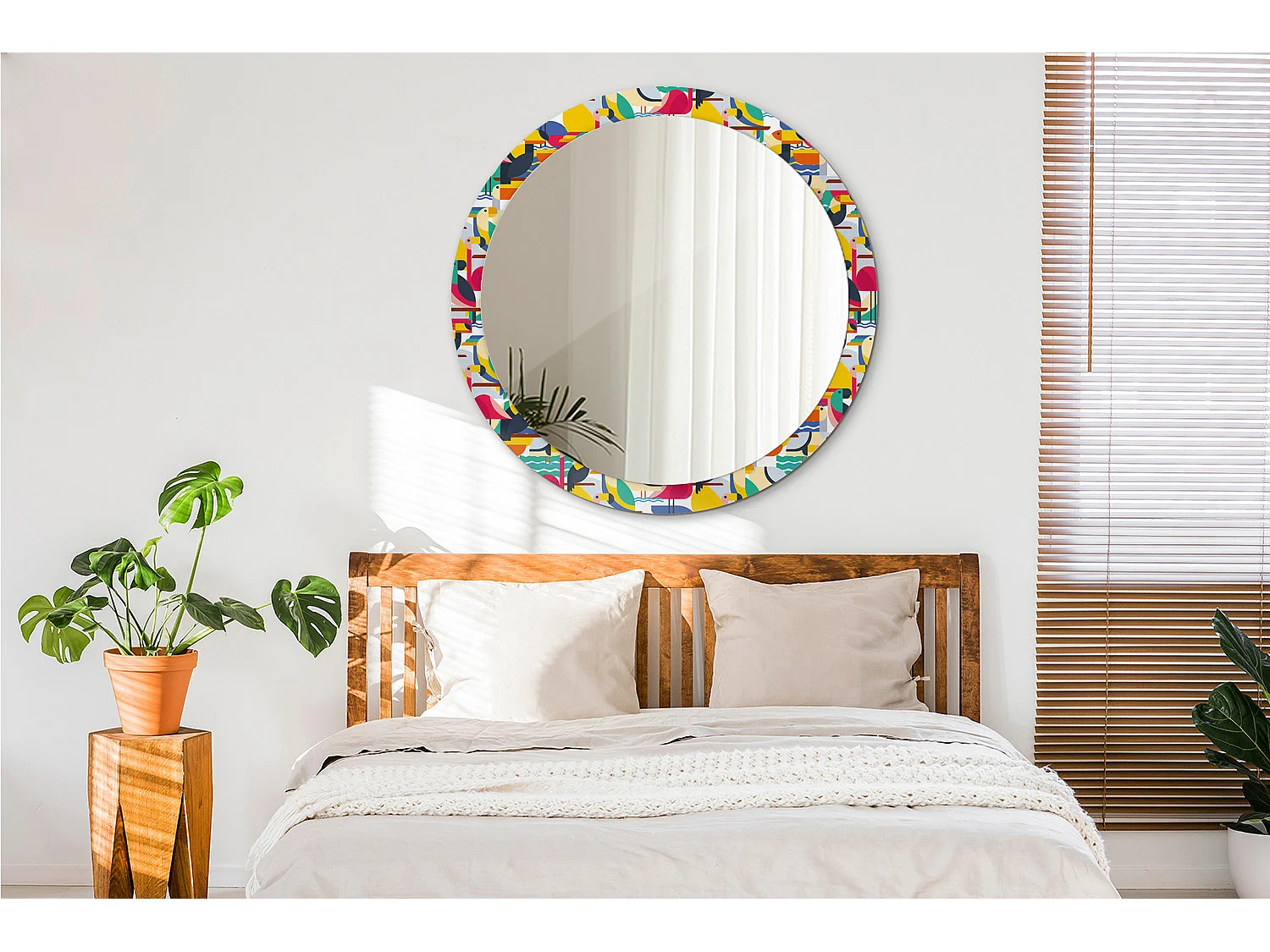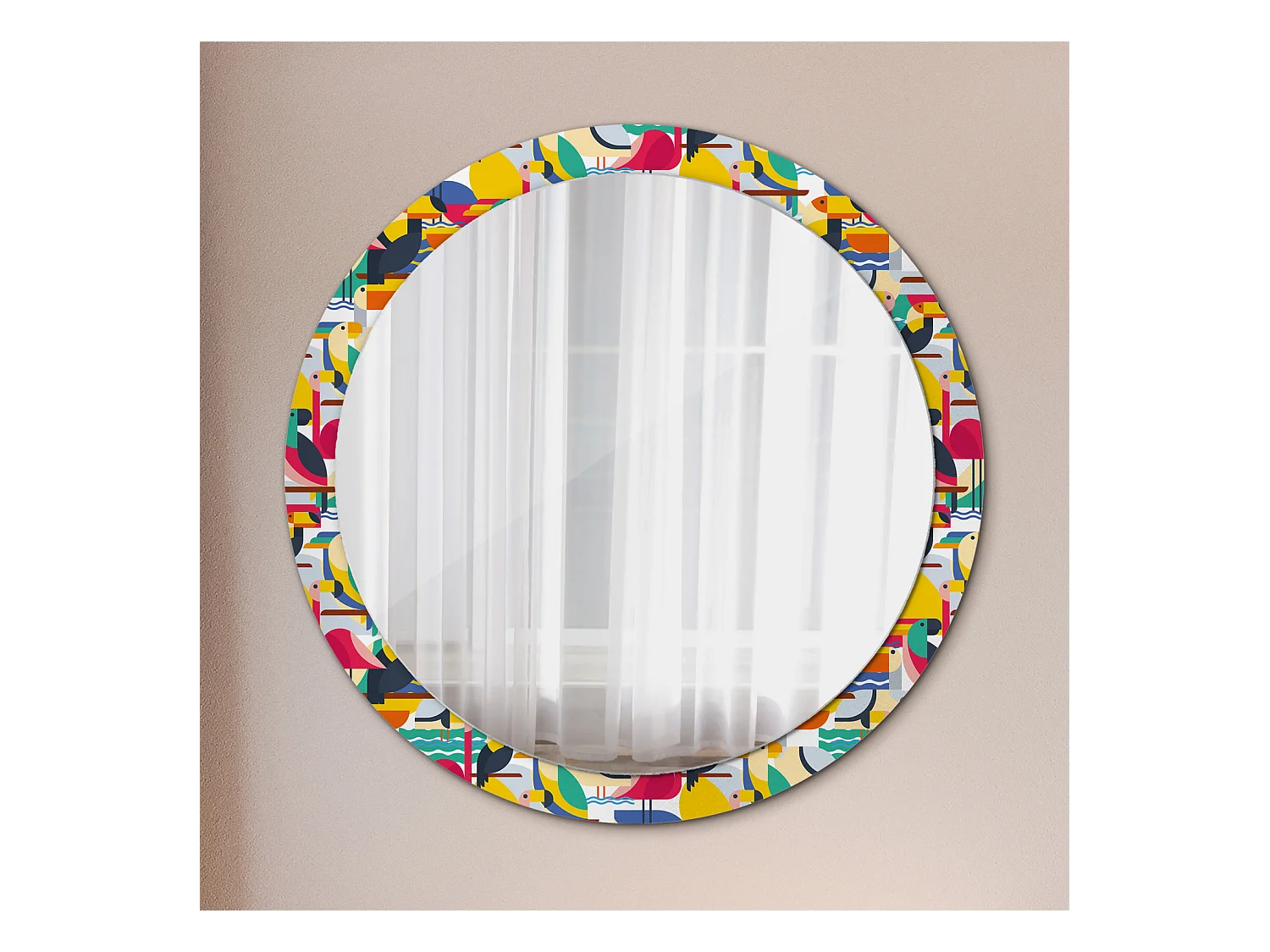 Dekorativer runder Spiegel - Geometrische tropische Vögel - 100 cm