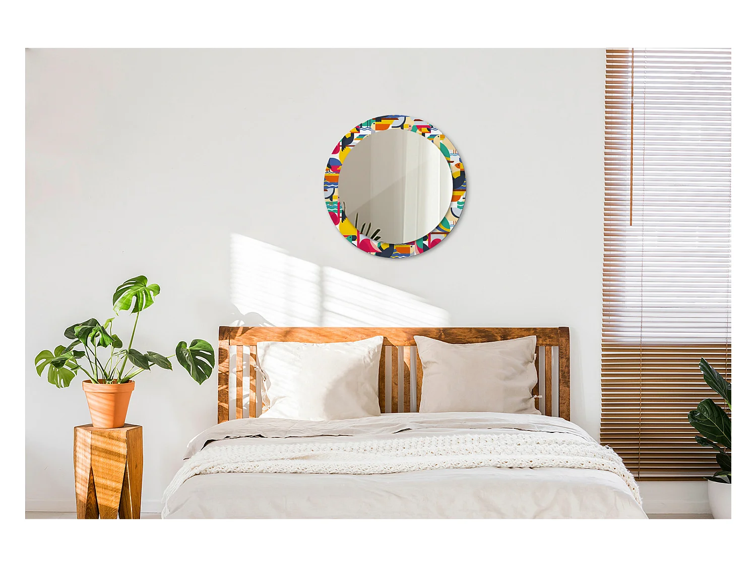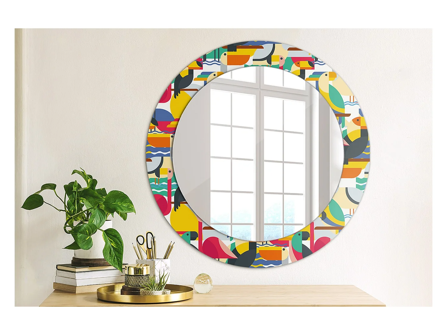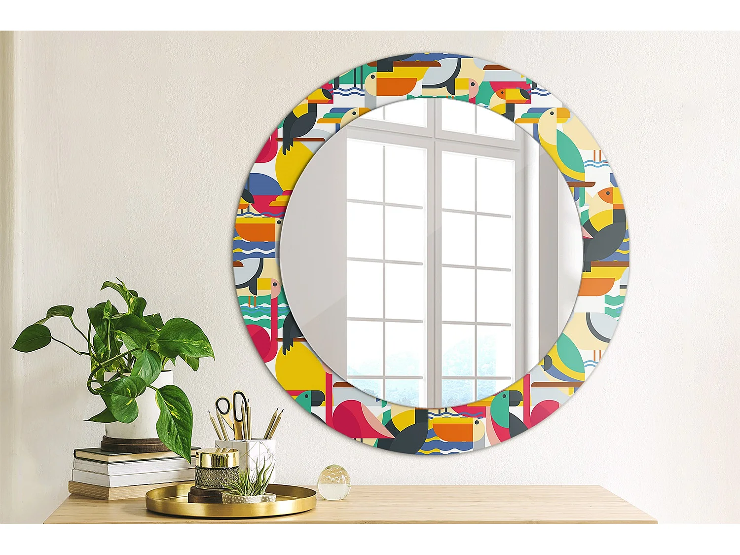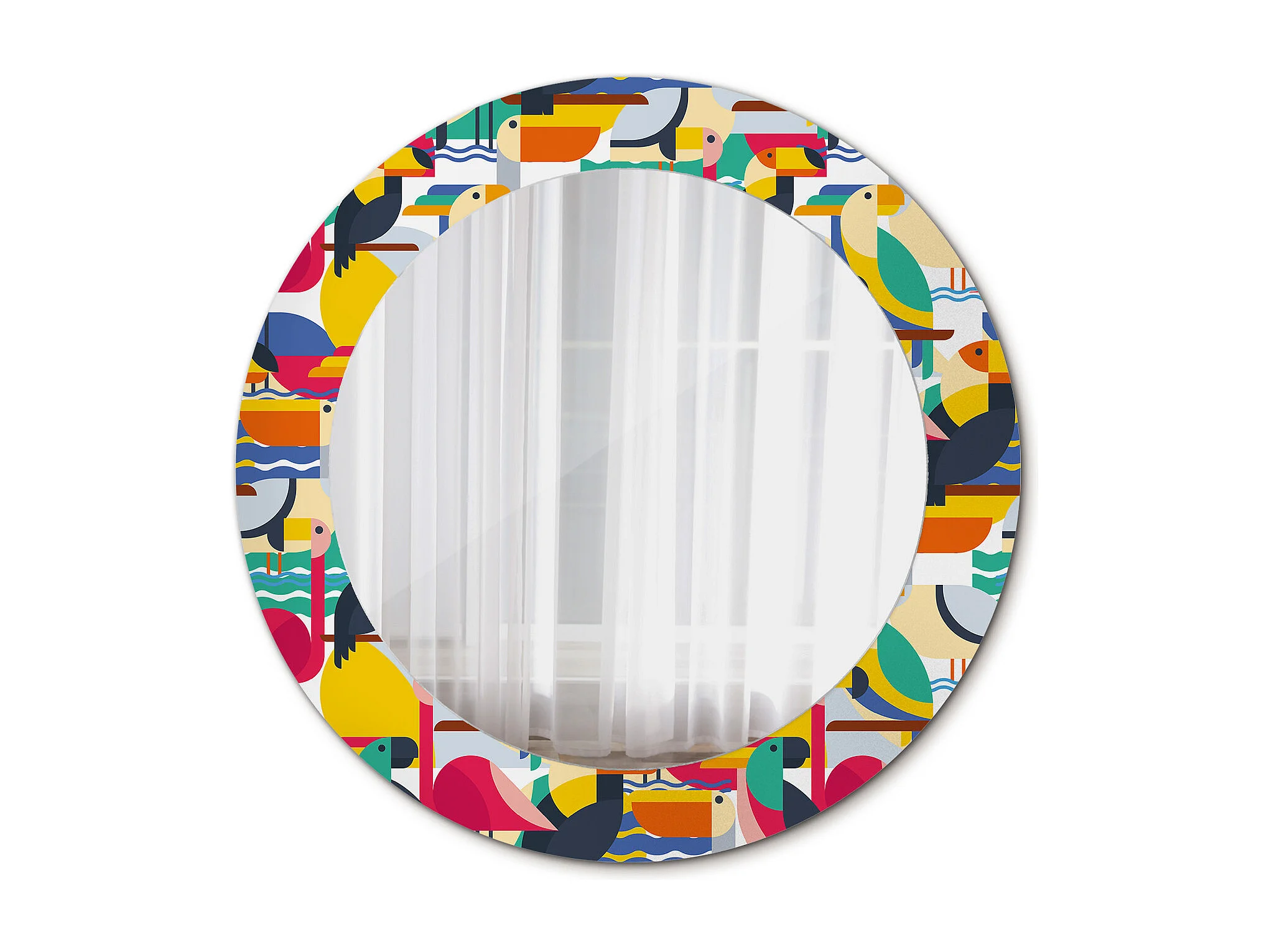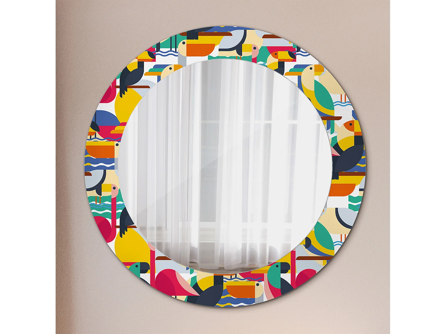 Dekorativer runder Spiegel - Geometrische tropische Vögel - 60 cm