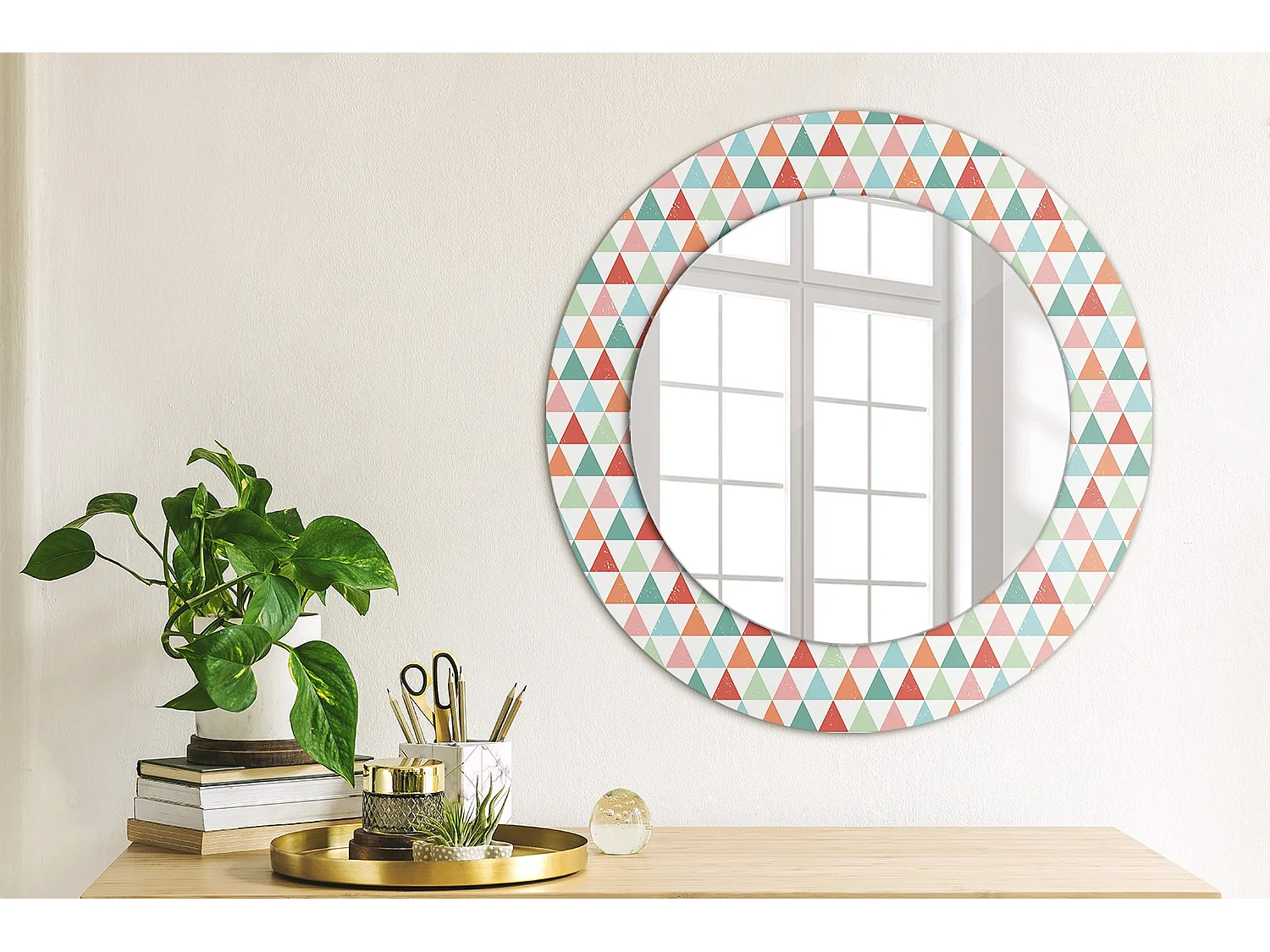 Dekorativer runder Spiegel - Geometrisches Muster - 50 cm