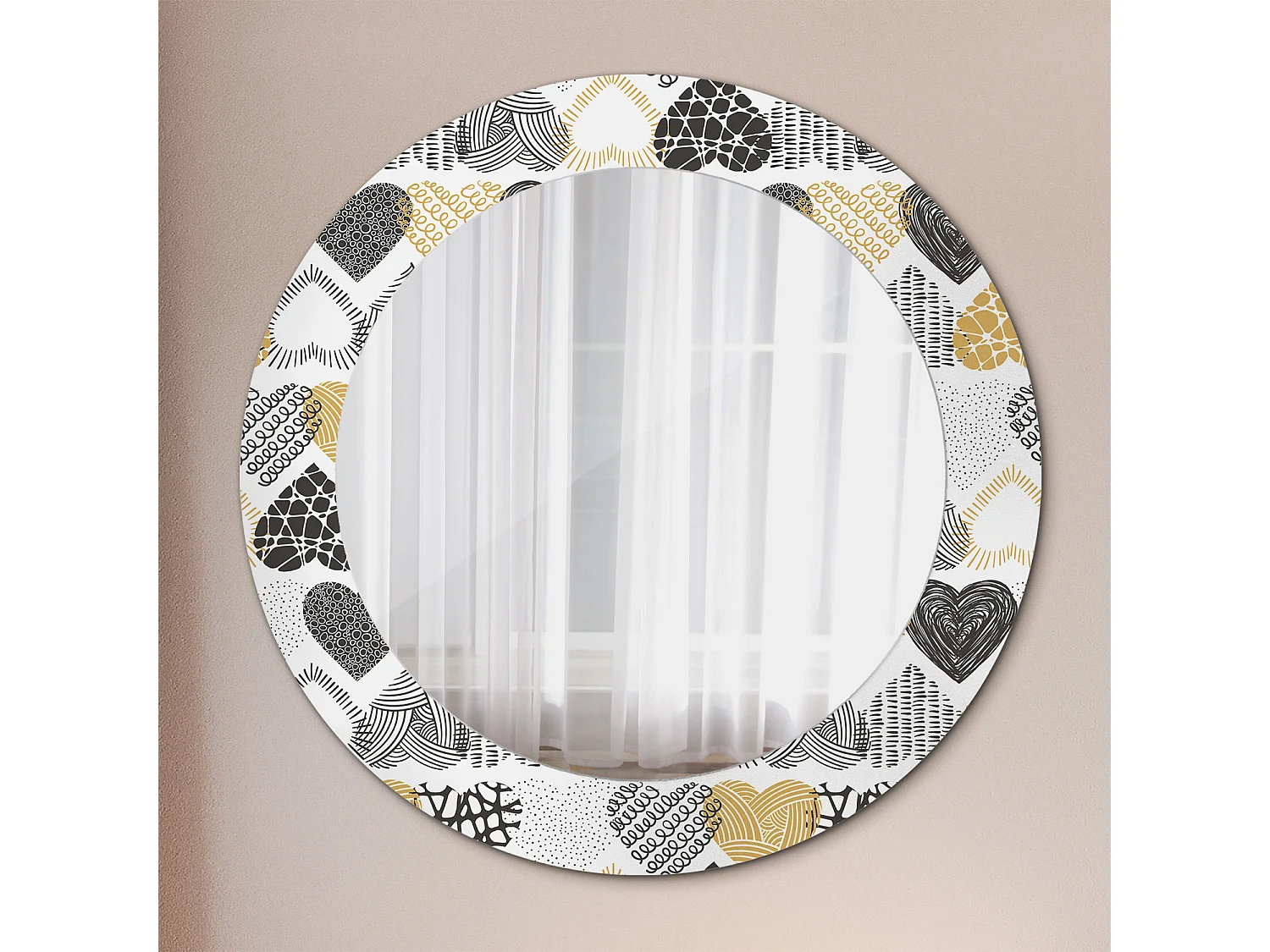 Dekorativer runder Spiegel – Herzen im Doodle-Stil – 60 cm