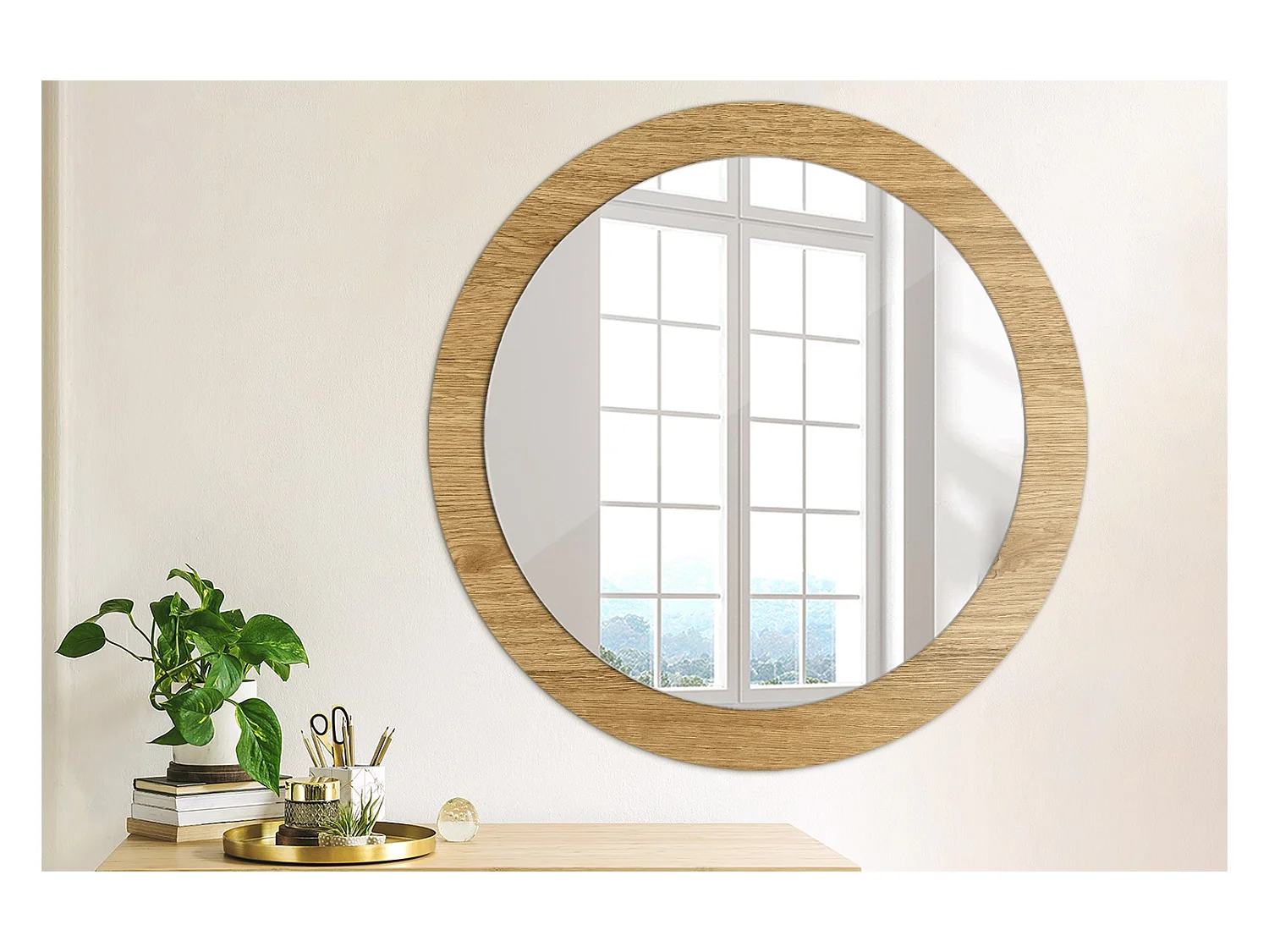 Dekorativer runder Spiegel - Holzstruktur - 80 cm