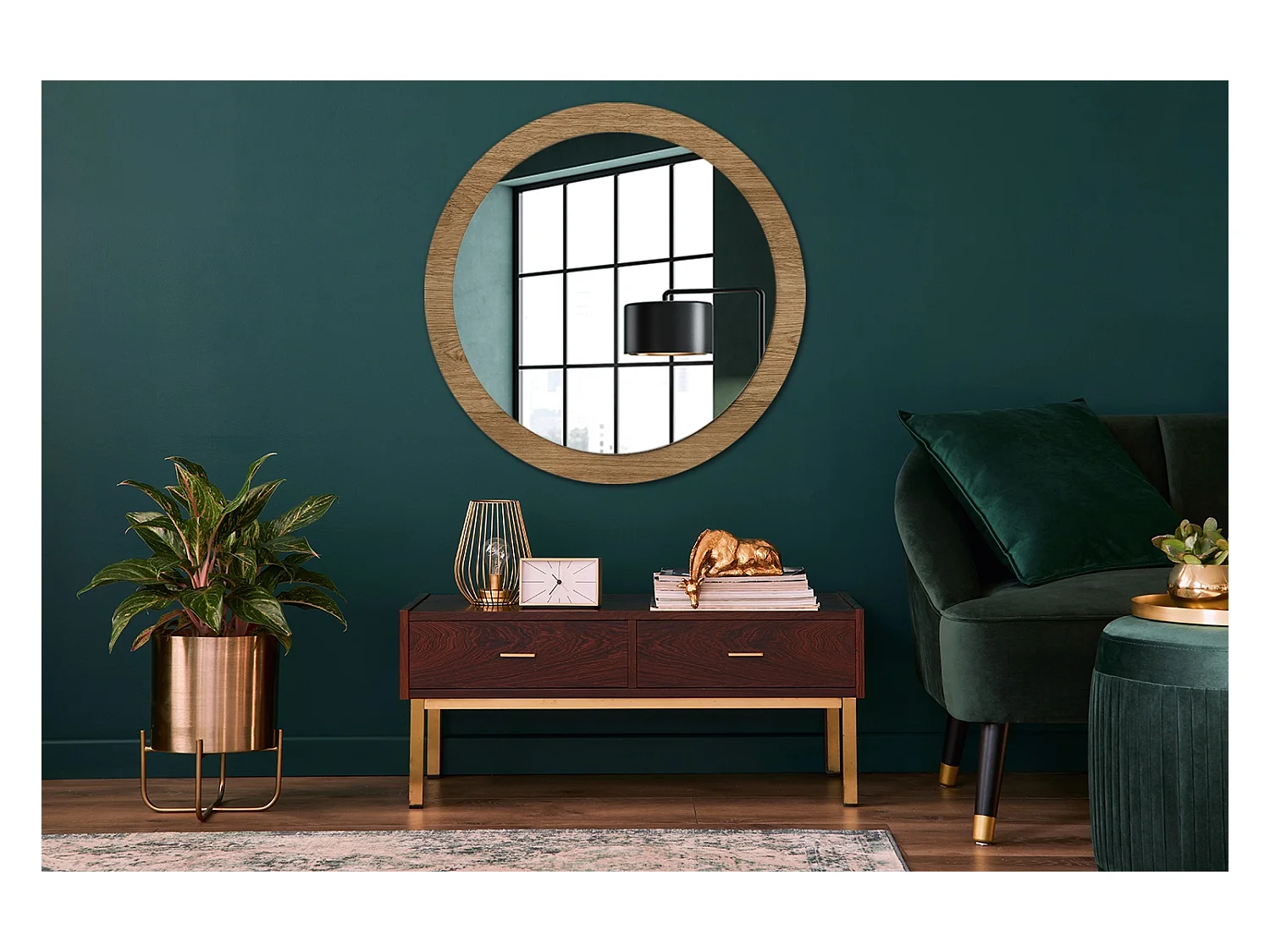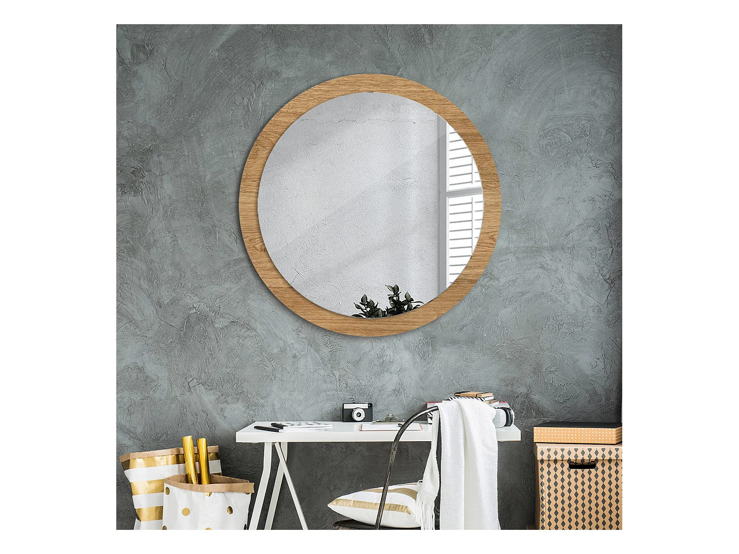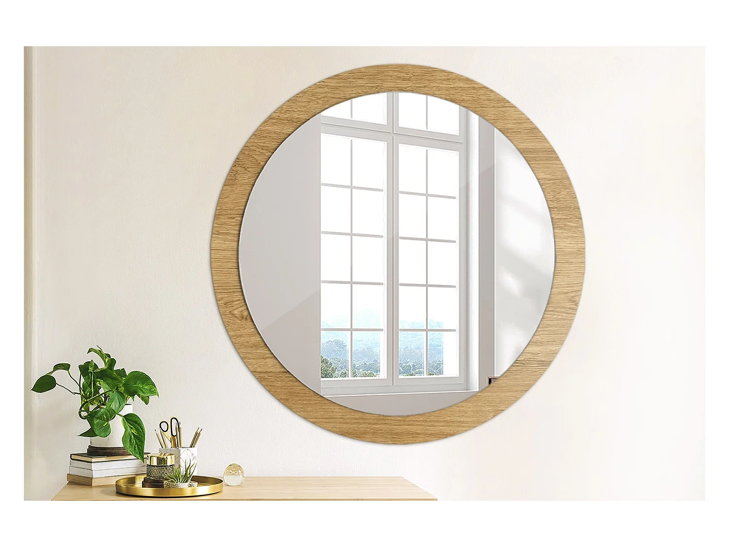 Dekorativer runder Spiegel - Holzstruktur - 90 cm
