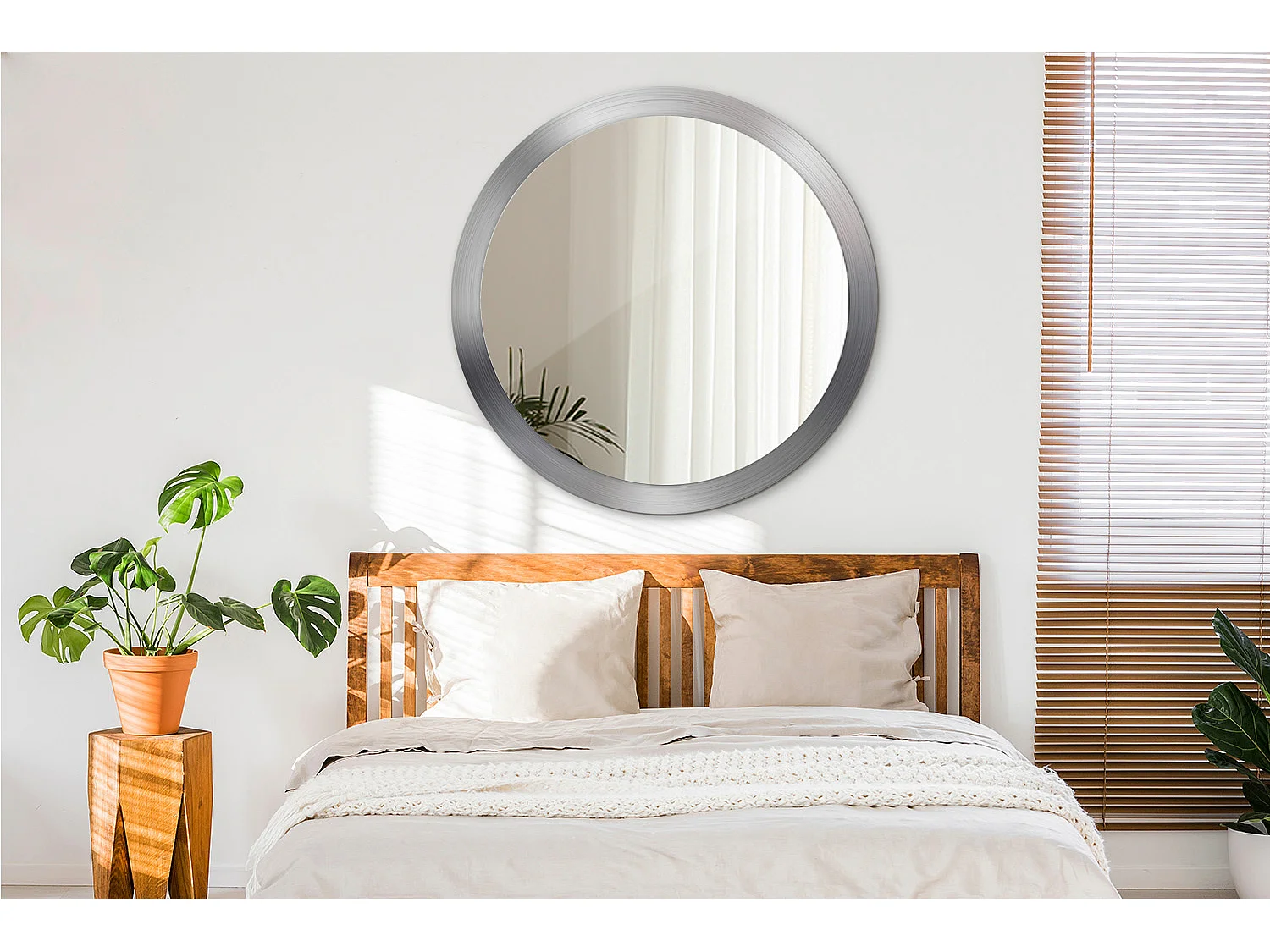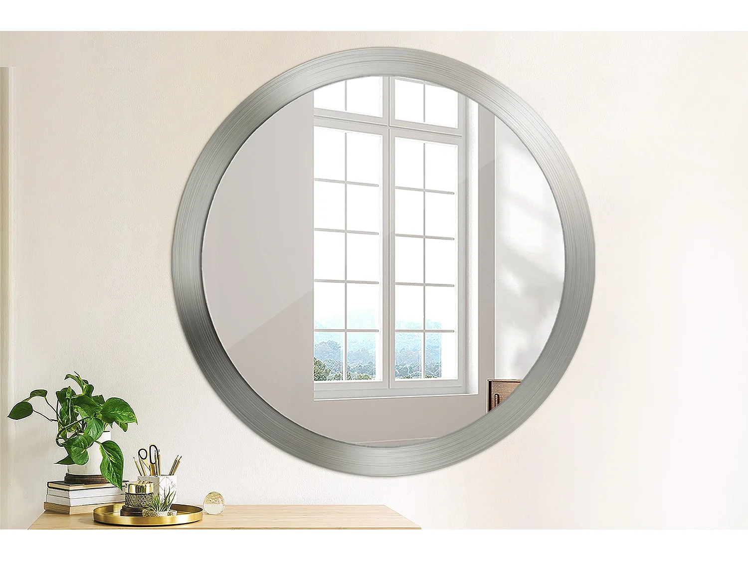 Dekorativer runder Spiegel - Metalloptik - 100 cm