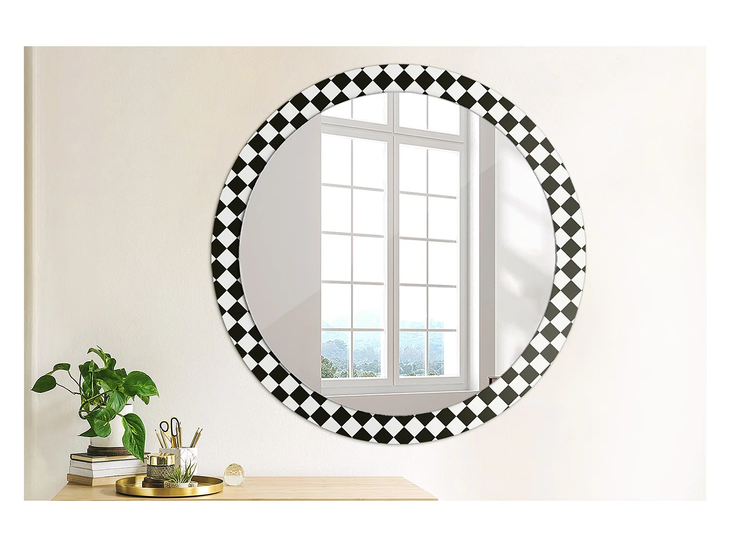 Dekorativer runder Spiegel – Schachschreibtisch – 90 cm