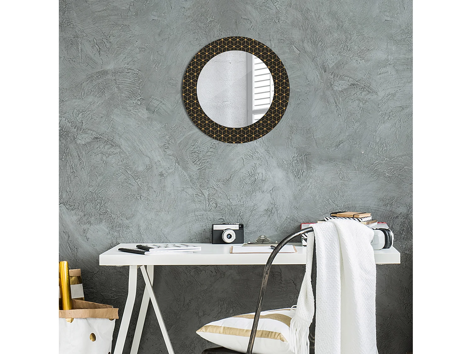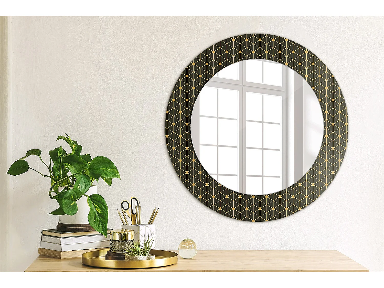 Dekorativer runder Spiegel - Sechseckgeometrie - 50 cm