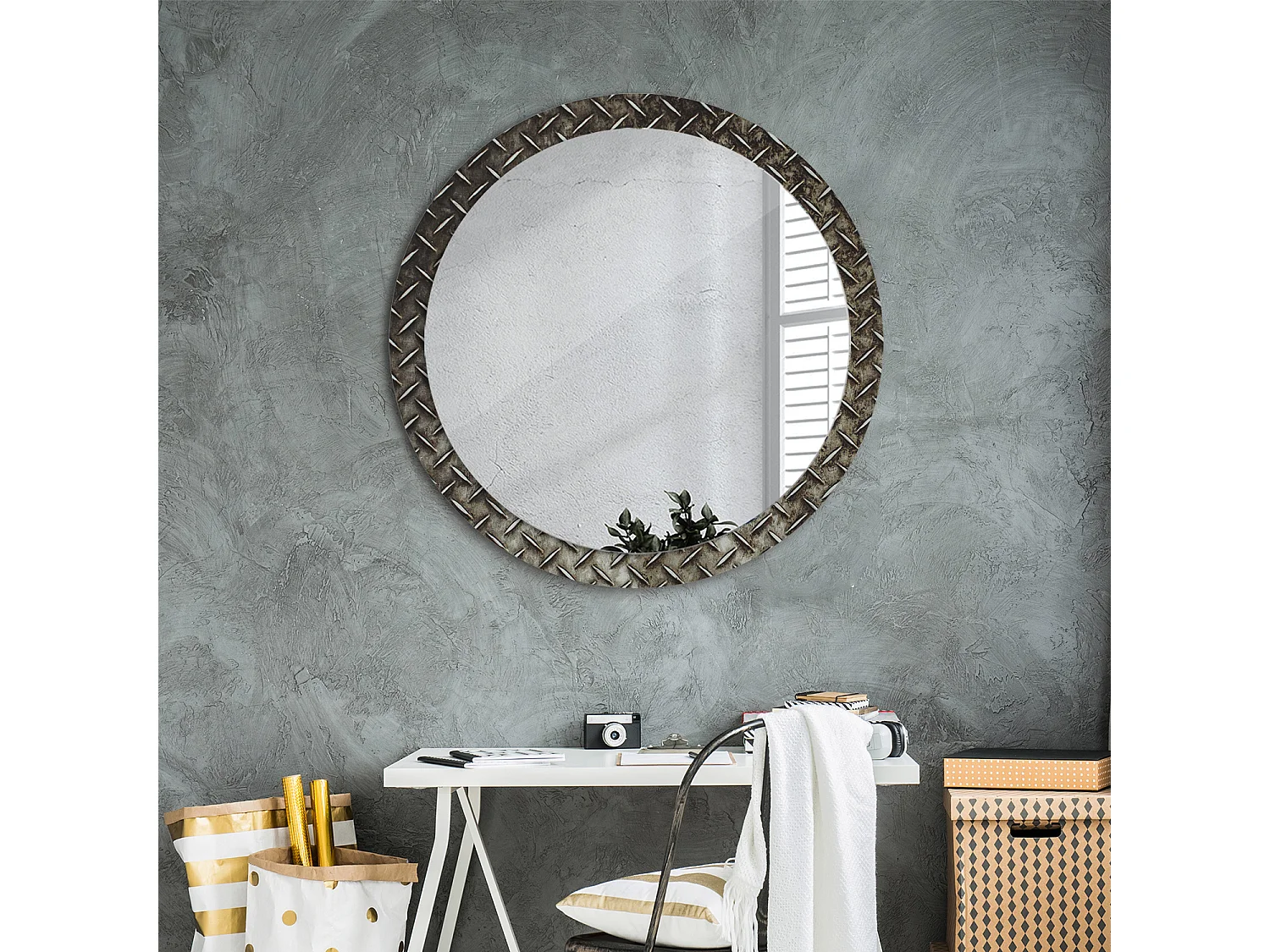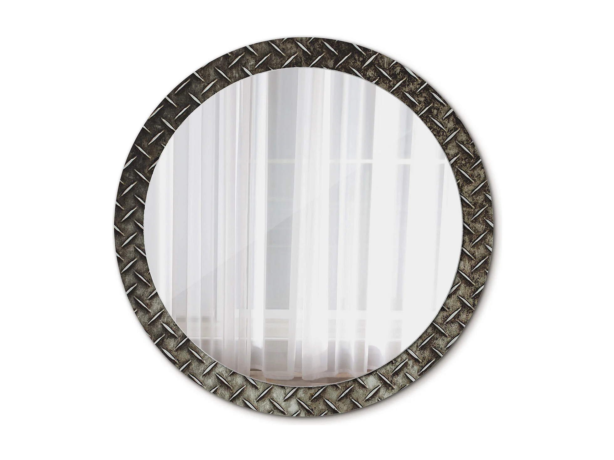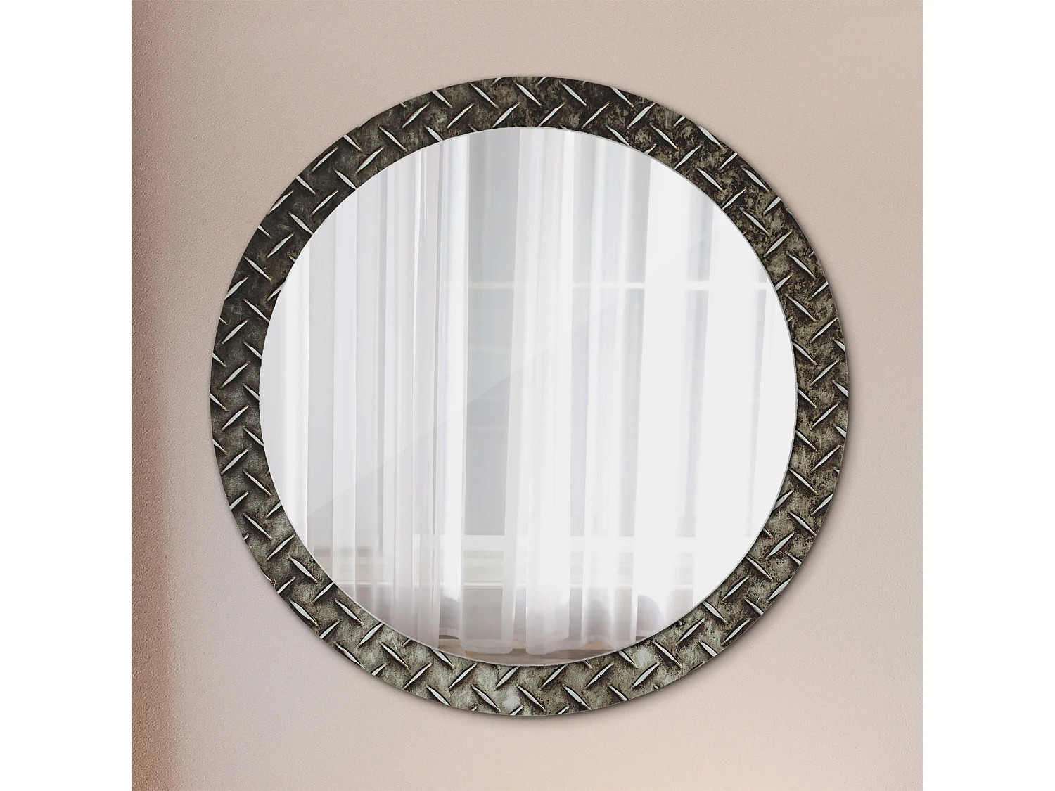 Dekorativer runder Spiegel - Stahlstruktur - 90 cm