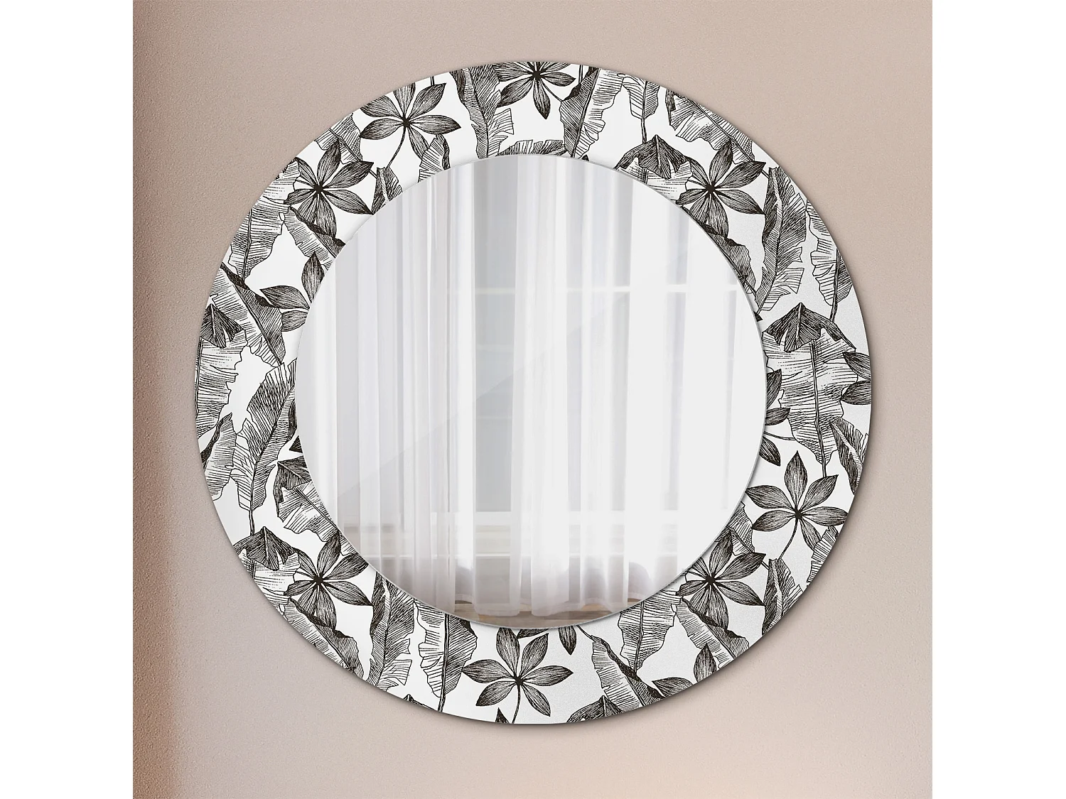 Dekorativer runder Spiegel - Tropische Blätter - 50 cm