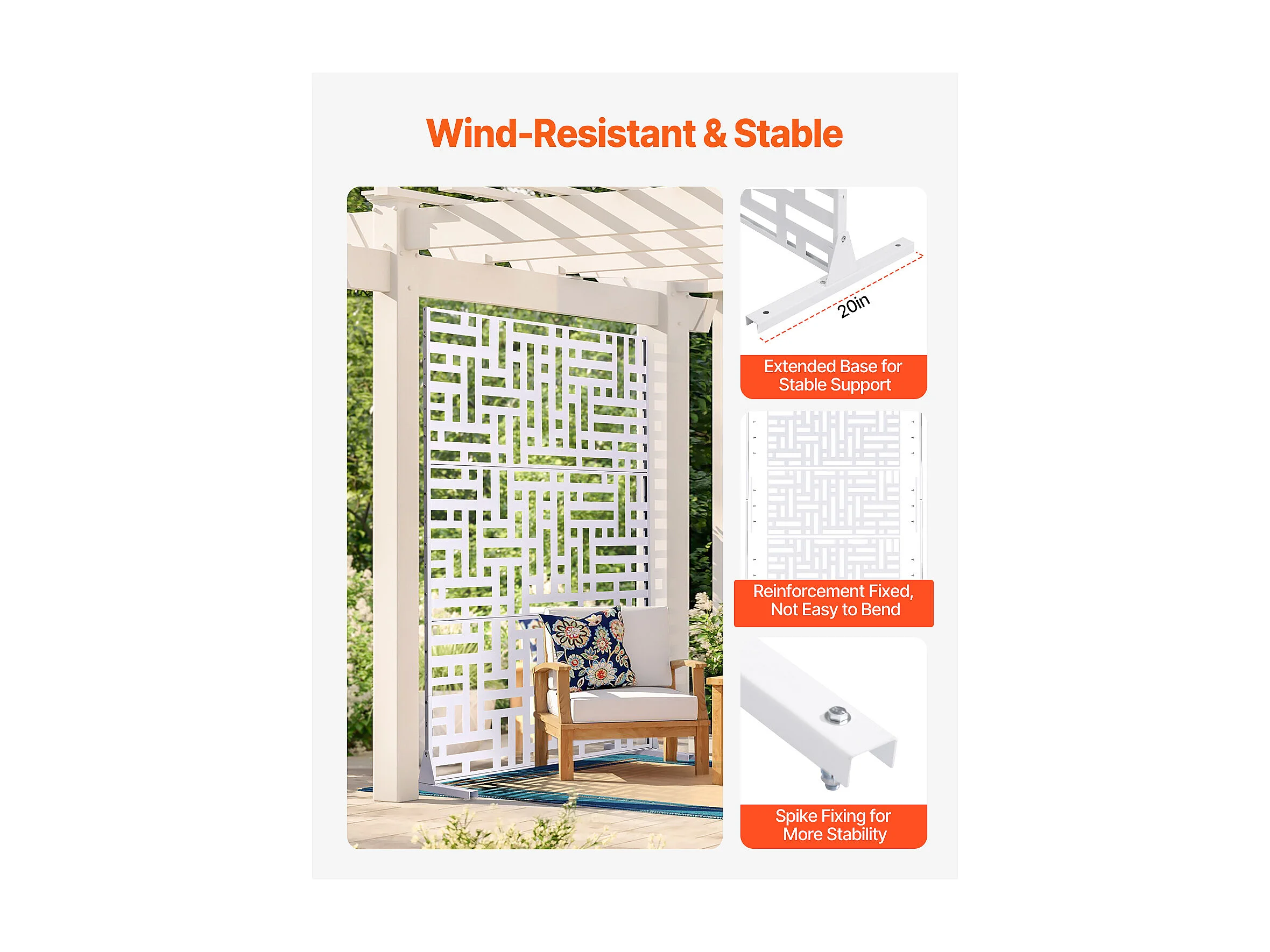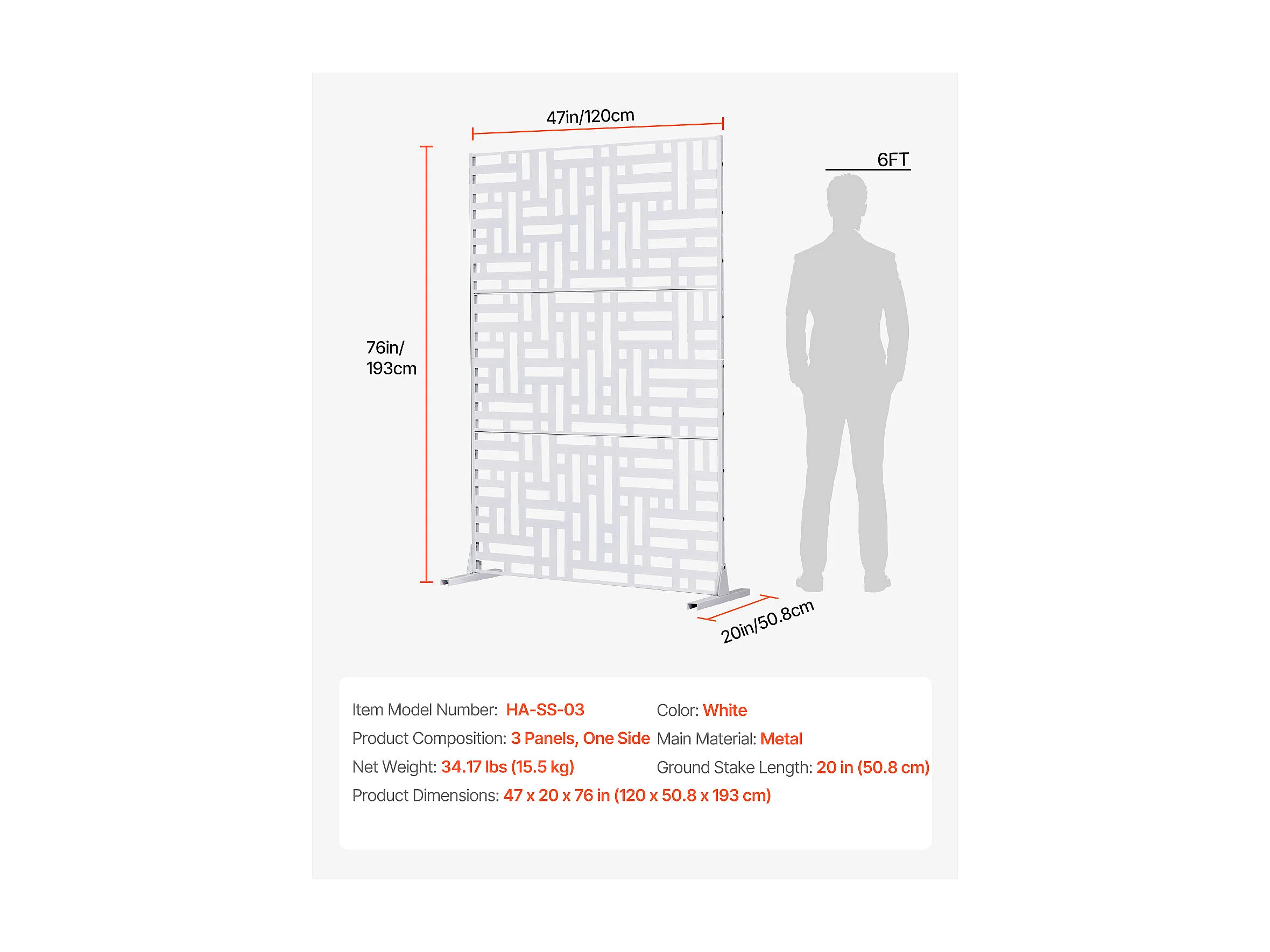 Dekoratives Außenpaneel, SucceBuy Sichtschutz aus Metall, 120 x 193 cm, Sichtschutzpaneele für den Außenbereich, Weiß