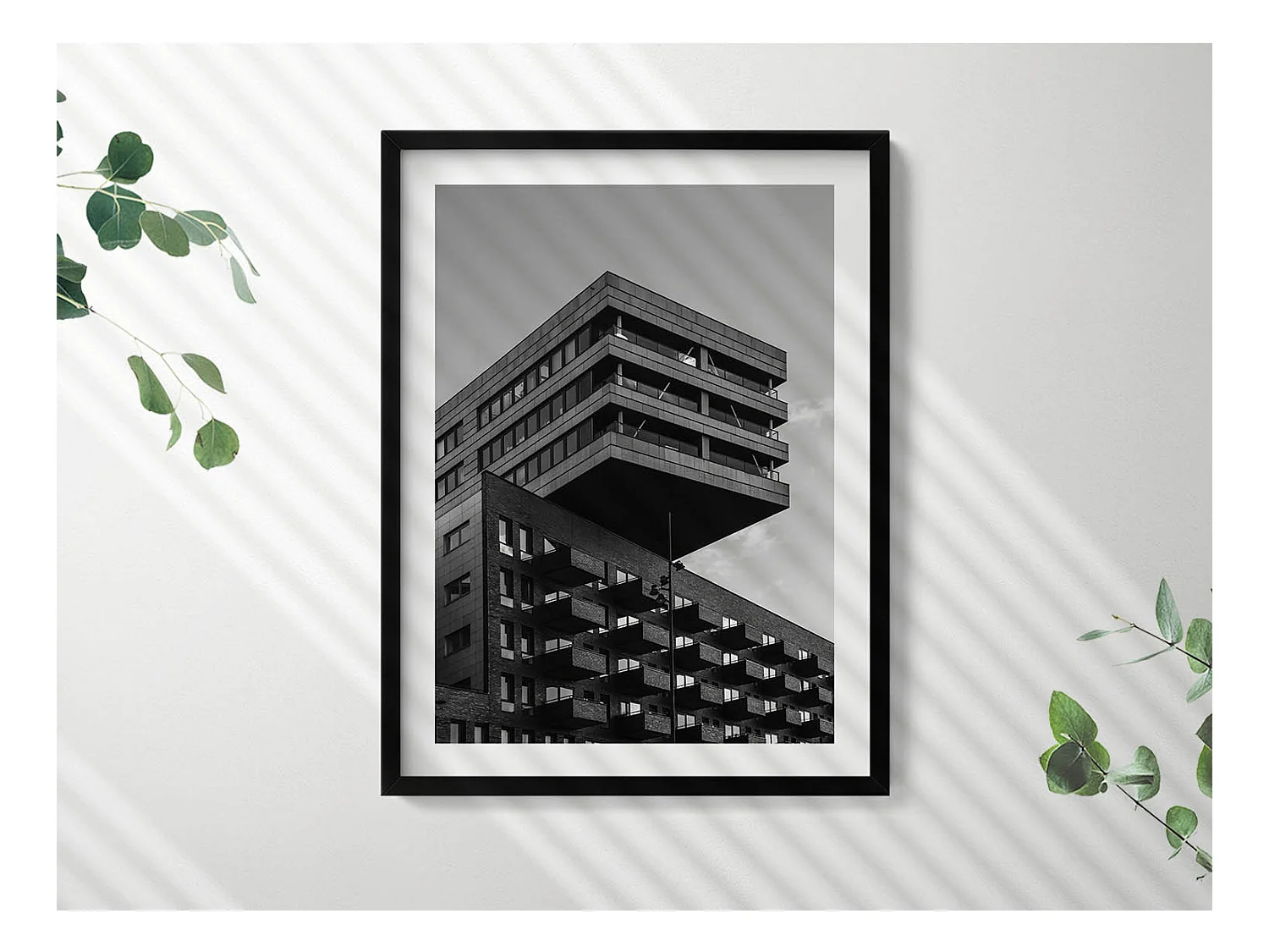 Dekoratives Gemälde mit schwarzem Rahmen, Architektur in Amsterdam 60 x 80 cm – Perfekt für das Wohn- oder Schlafzimmer
